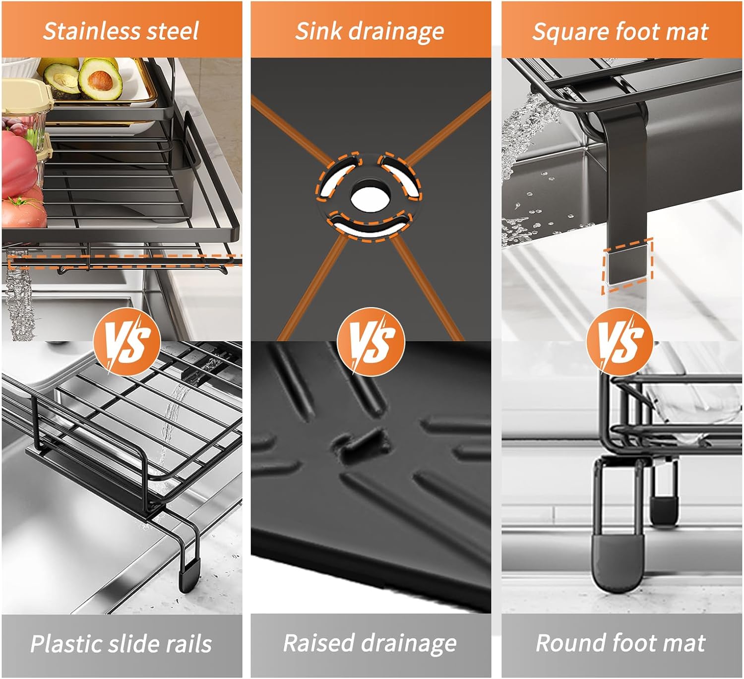 | Additional Features | Adjustable, Automatic Drainage, Expandable, Rust Resistant, Space Saving |