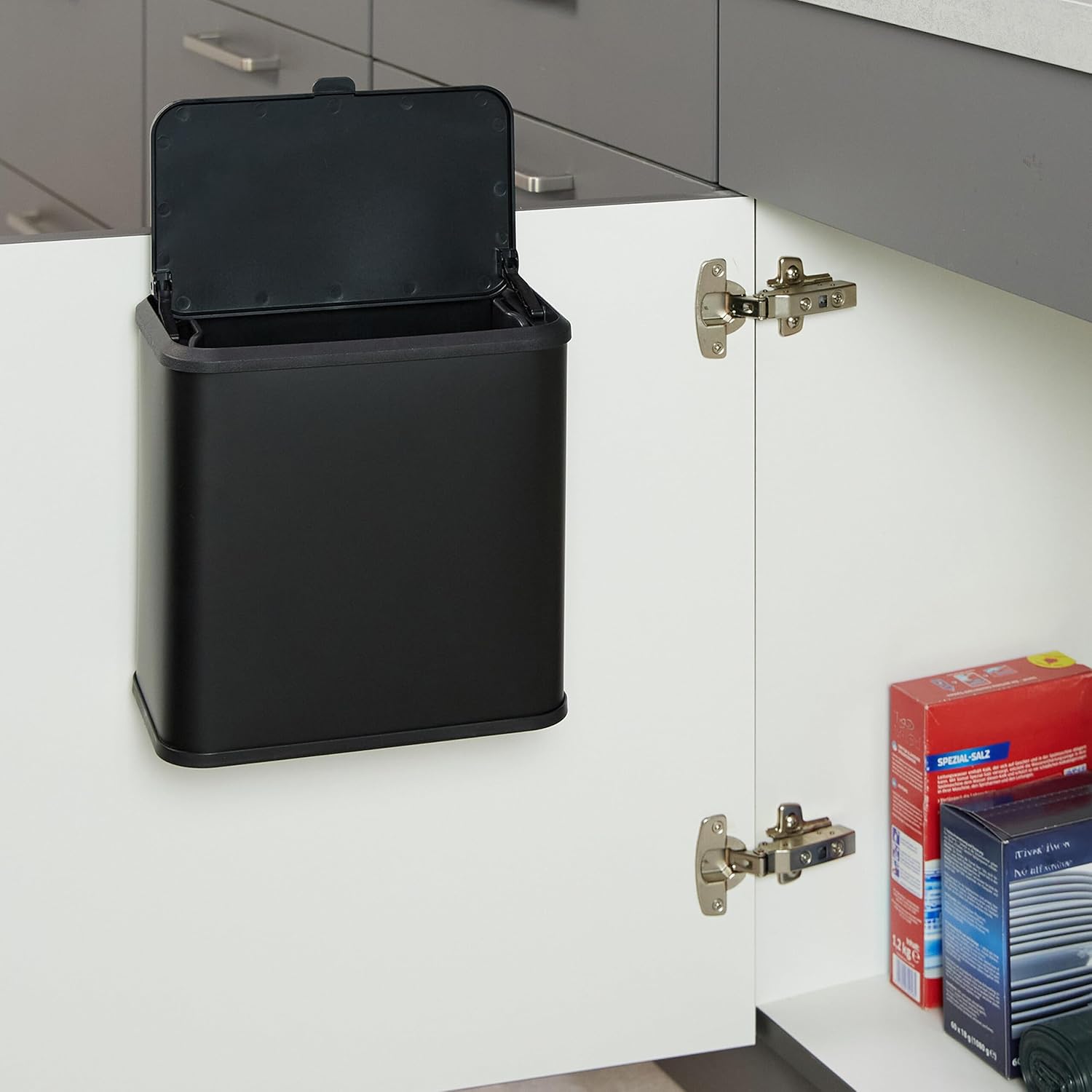 | Item Type Name | Relaxdays 5 Litre Hanging Bin Kitchen Bathroom Interior Bin Metal and Plastic Cosmetic Bin, Black |