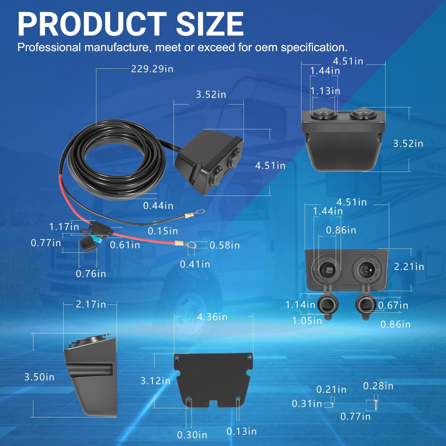 This HWK-DC DC Hardwiring Kit can easily power anywhere in your vehicle from the starter or auxiliary battery. Equipped with durable 10AWG wiring, it provides stable power to the rear of your vehicle with minimal voltage drop. Designed to fit for most RV/Vehicle Power Supply, compatible with Dometic Multiple Products. This DC Hardwiring Kit has 2 output socket types(standard and 2-pin threaded for Dometic )for a secure connection to your powered cooler. Provides DC voltage to your active cooler or other 12V/24V device.