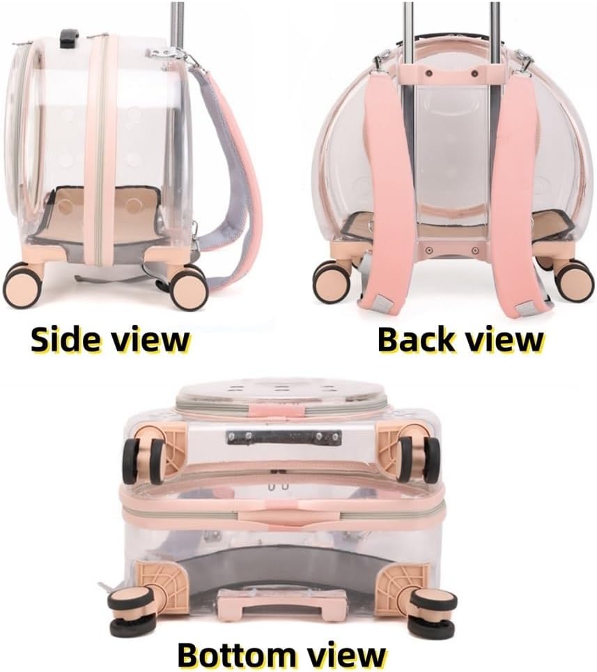 Make traveling with your pet easier and more enjoyable with this innovative rolling pet carrier. Multiple ventilation holes enhance airflow, while the roomy design comfortably fits cats or small dogs up to 20 pounds. A spacious pet-friendly window allows for two-way entry, making it easier to access, feed, or interact with your pet on the go.