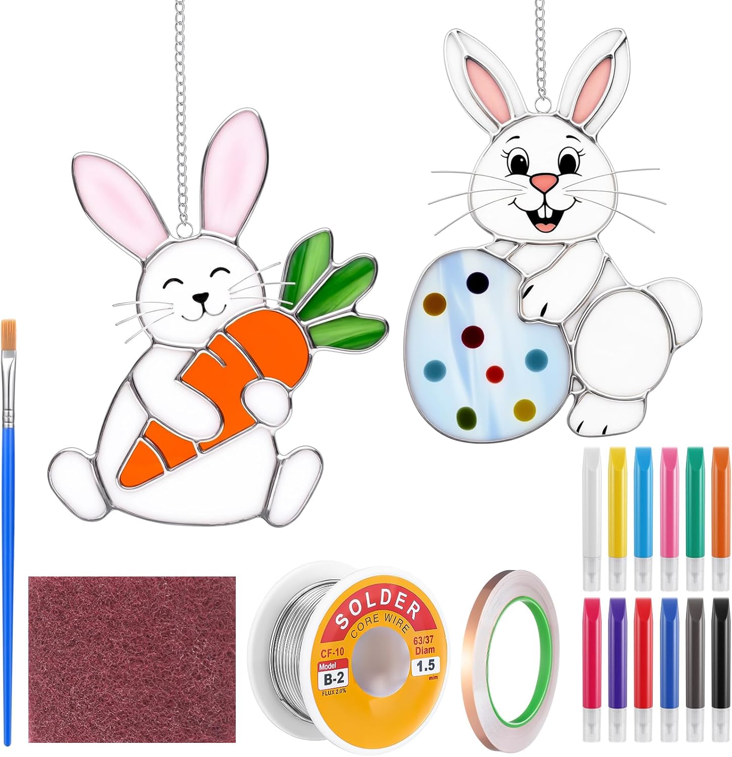 Features: Easter Design: Transform your home with festive using the Easter basket pre cut suncatcher craft kit. Ideal for adding a splash of color to your Easter celebrations! Wide Application: For craft enthusiasts or as a thoughtful gift, these suncatchers can adorn windows, walls, or doors, casting enchanting shadows that brighten any space. Specifications: Material: stained Glass Color: multicolor Size: about 5 x 5 inch Package includes: 4 X suncatcher 4 Of each, 20 total: jumper rings, metal chains, polishing tools, pattern sheets, suction cups 1 x Copper foil tape 1 x Solder wire 1 x Flat-tipped pen 12 x Paint pens Notes: Manual measurement, please allow slight errors on size. The color may exist a slight difference due to different screen displays