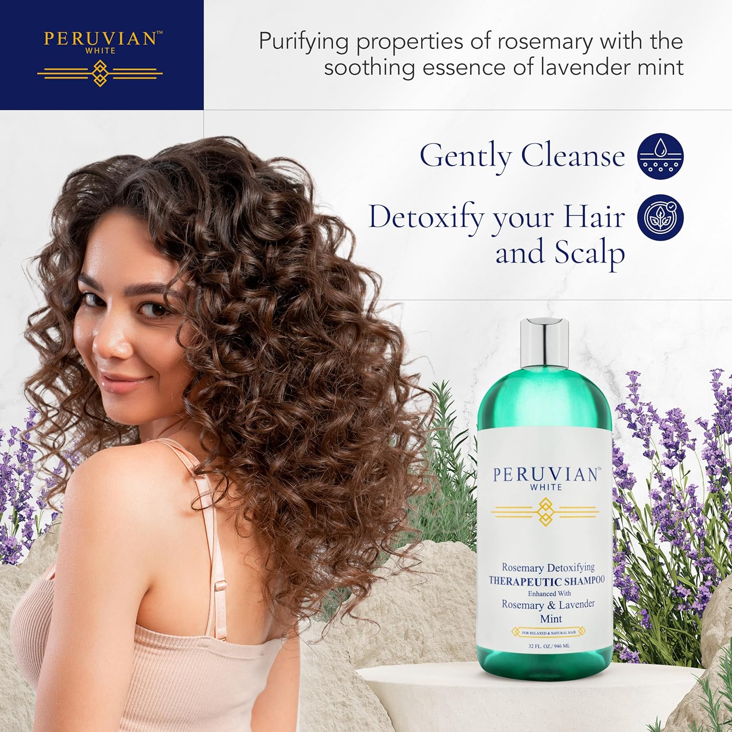 Peruvian White Rosemary Detoxifying Therapeutic Shampoo is an excellent deep cleansing anti- breakage shampoo, fortified with rosemary, amino acids and tea tree oil, delicately removing buildup of oils, dirt and styling products that may coat the hair and clog hair follicles, removing impurities such as chlorine, iron, hair dulling minerals and medication, hair is left clean and fully prepared for conditioning treatments all while reverting breakage mending split ends and promoting phenomenal hair growth and shine.