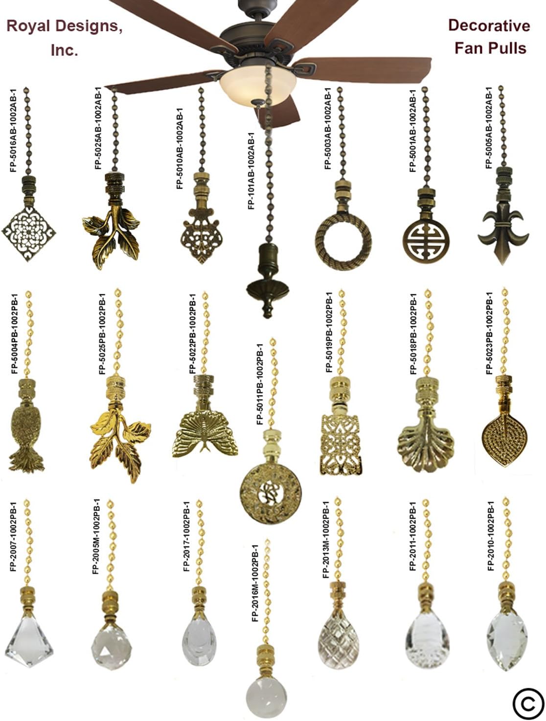 Royal Designs fan pull chain Medium Clear Crystal Design set is the perfect addition to your ceiling fan! Conveniently adjust the settings of your ceiling fan and light with our fan pull chain set. Simply pull the chain to turn your fan and/or light on and off. These fan pull chains have a Polished Brass finish and are coated with protective Lacquer to protect against discoloration and tarnishing. Customize an existing fan or fixture in your home. Beautify the interior environment for your homeCan apply to ceiling fan chain, celling light etc.Easy to fit