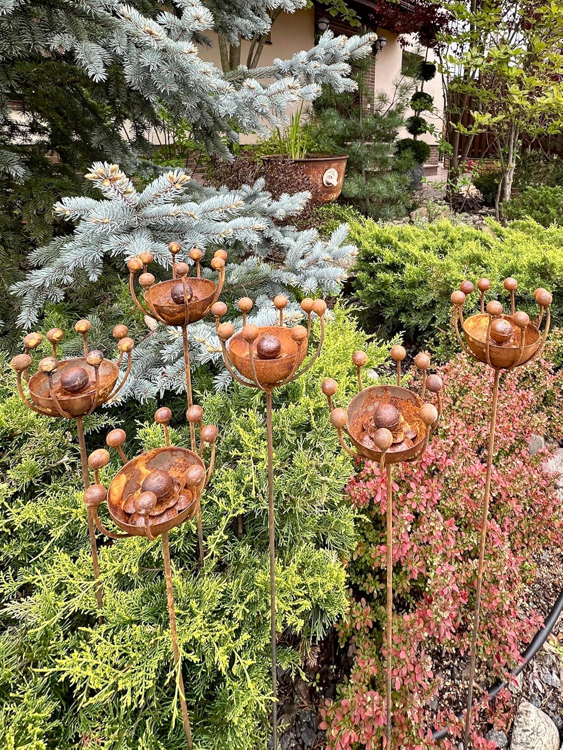 Set of 6 Rustic Metal Exotic Flowers – Unique Handmade Garden Art Add an artistic flair to your garden with this set of 6 handcrafted rustic metal exotic flowers. Their sculptural and unexpected design creates a bold accent in flower beds, along pathways, or in patio planters—bringing a blend of rustic charm and modern creativity to your outdoor space. Each flower is crafted from natural metal and develops a beautiful rusted finish over time, giving it unique character and texture. Built to withstand the elements, these metal blooms offer year-round beauty with zero maintenance.