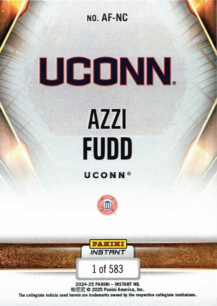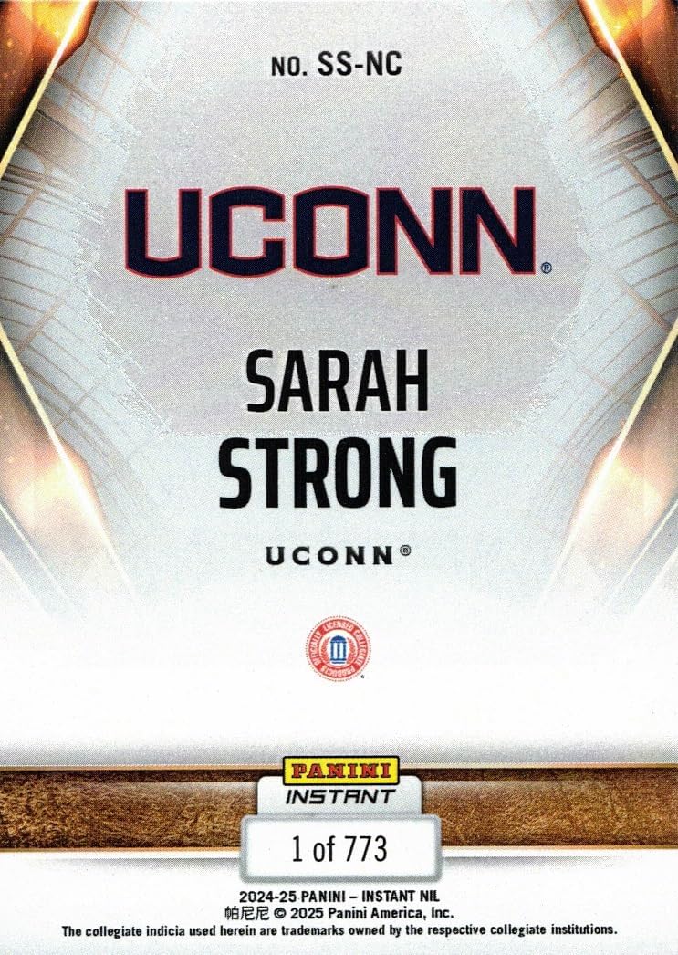 This item is for the following three Huskies basketball cards: 2024-25 Panini Instant #SS-NC Sarah Strong Basketball Card 2024-25 Panini Instant #PB-NC Paige Bueckers Basketball Card - 'Paige Buckets!' 2024-25 Panini Instant #AF-NC Azzi Fudd Basketball Card Each card is an original, authentic trading card produced by Panini in 2025. Each card comes in a protective top loader for its protection and to display. Cards may have small flaw(s). Stock photo shown.
