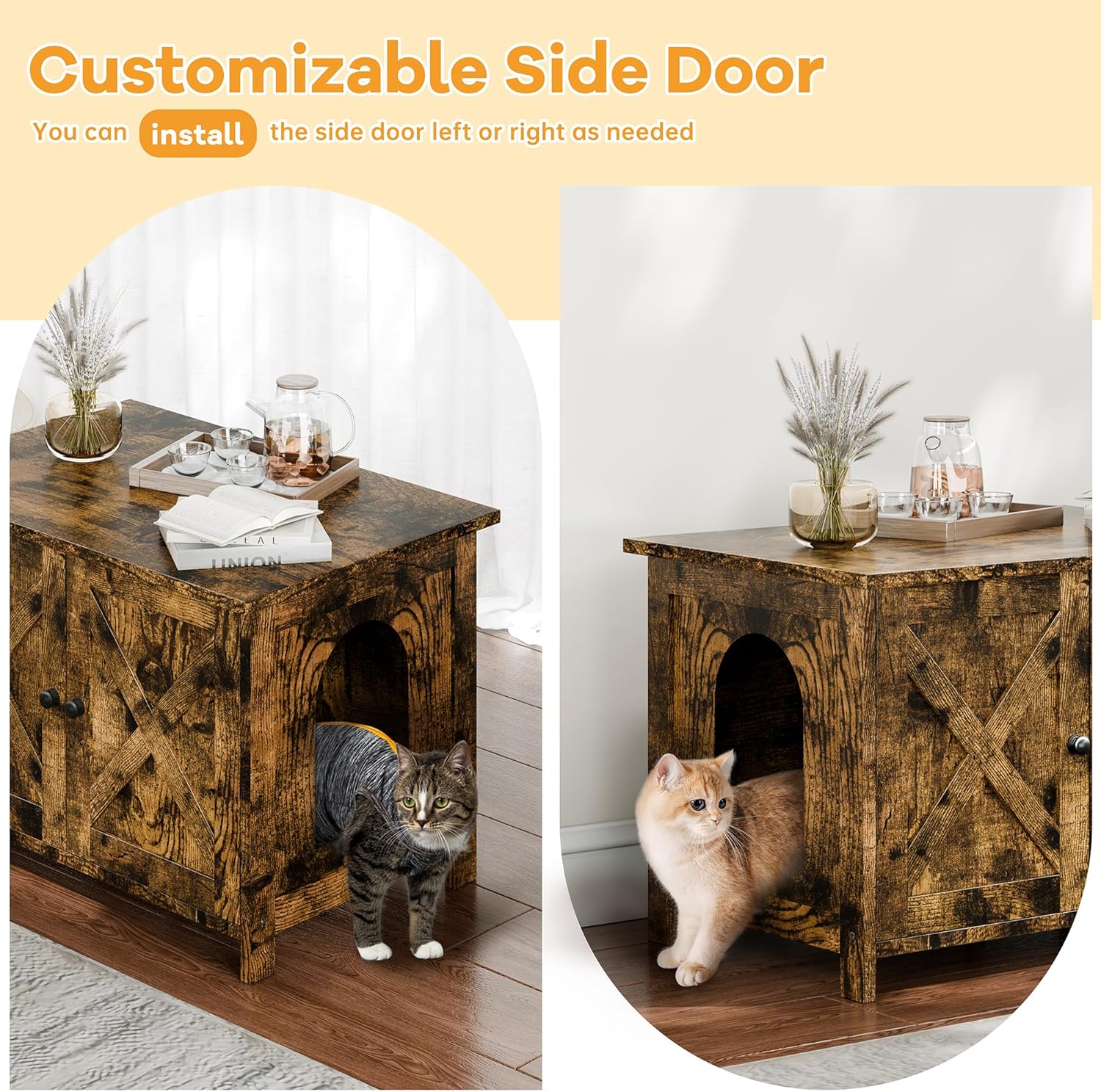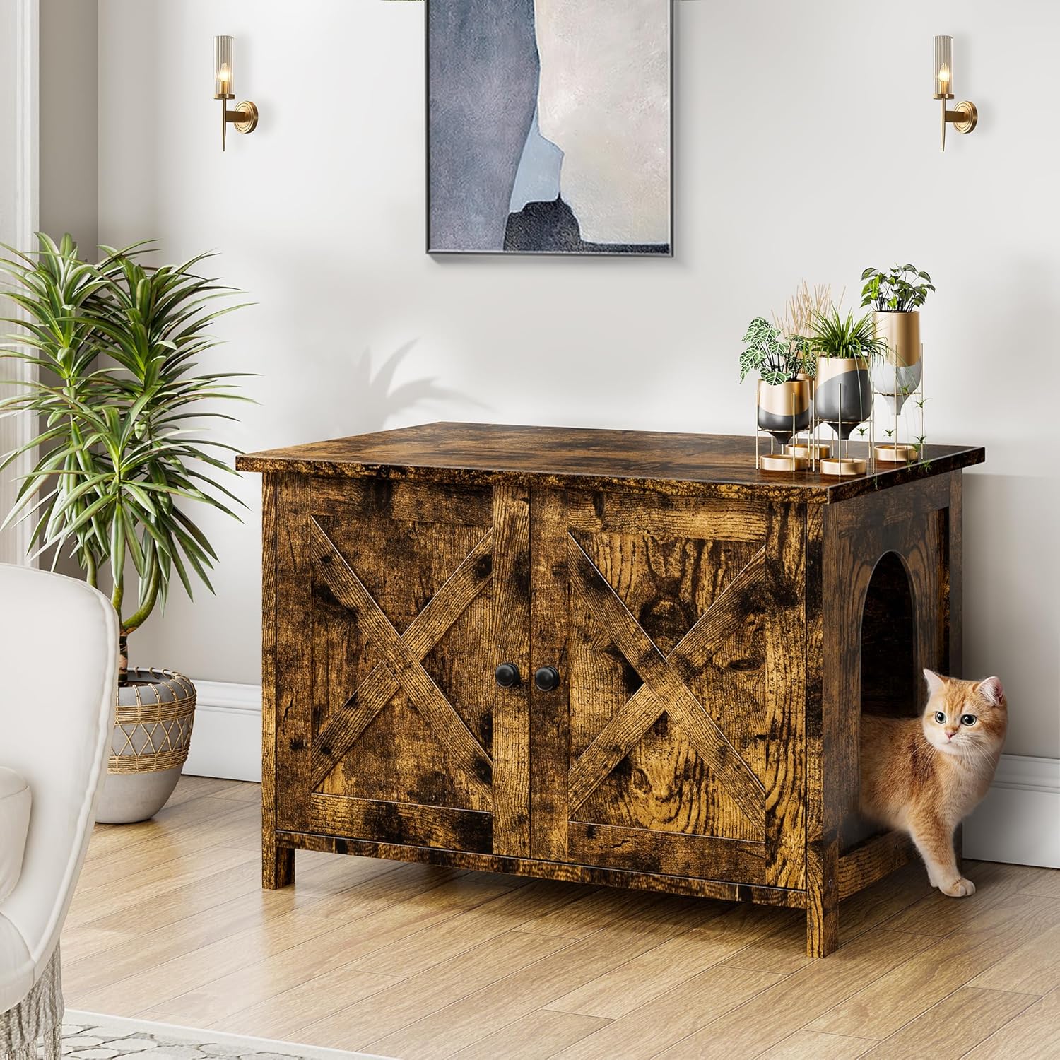 Double Door Indoor Cat House makes cleaning cat litter easier and more convenient; Double Magnetic Locks keep the doors closed tightly so they won't awkwardly open by themselves. There are also arched door entrances on the side for good ventilation allowing your cat to breathe fresh air freely.
