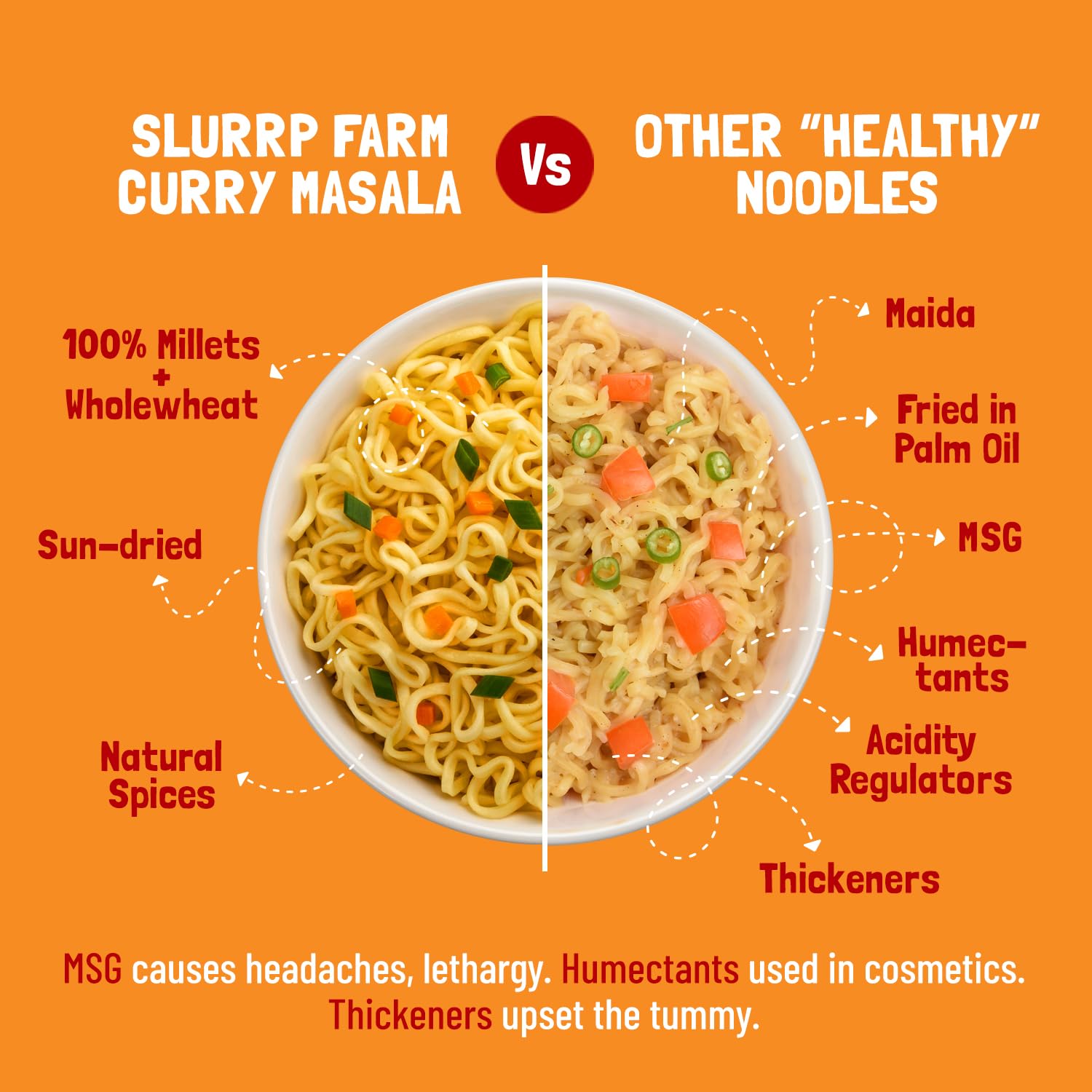 No Maida, Not Fried. Enjoy Slurrp Farm's healthy millet noodles made with little millet and whole wheat. Instant, Easy-to-cook and Yummy. Vegan Noodles