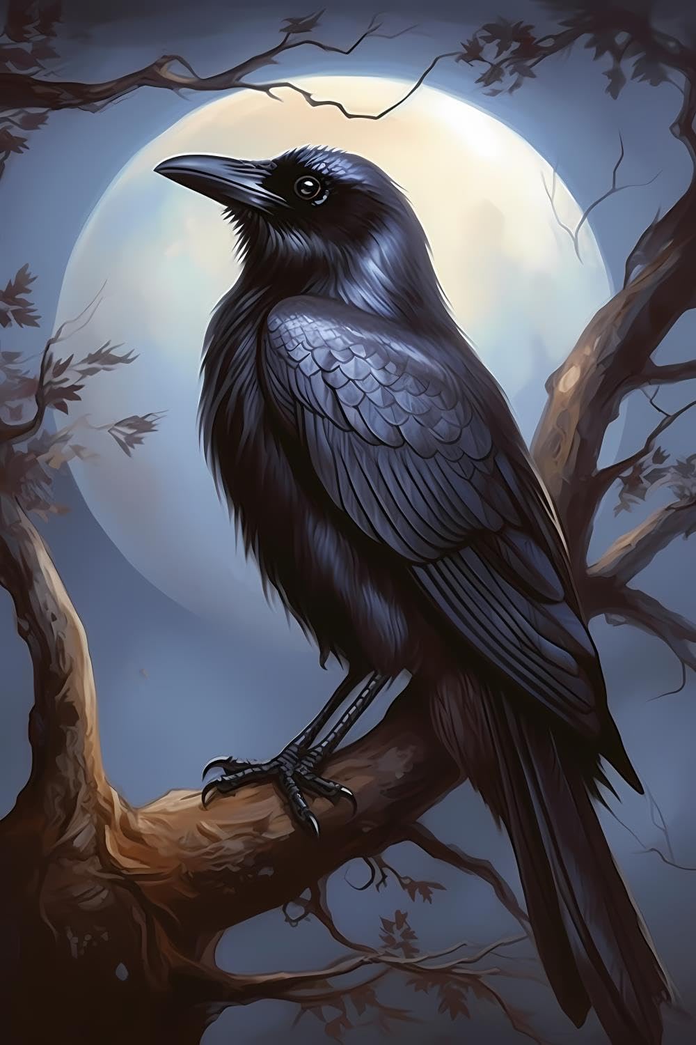 This Crow Raven Moon Diamond Painting Is Made Of High-Definition Printing Waterproof Canvas, With Plastic Protective Film On The Surface, Strong Adhesive, Diamonds Are Not Easy To Fall Off, And Can Be Used For A Long Time. 5D Full Round Diamond Diamond Painting Kit, You Can Choose To Frame It And Hang It Anywhere You Want To Hang It, Such As Decorating The Room In The Bedroom, Living Room, Dining Room, Kitchen, Study, Or As A Gift To Your Loved Ones, Lovers, And Friends. And This Belongs To Pure Handmade, You Can Get Fun And Satisfaction From It, And It Can Also Help Your Family Members To Improve Their Attention, And The Most Important Thing Is That You Can Do It Together And Improve Your Relationship With Each Other!Production Steps:Step 1, According To The Corresponding Number, Find The Corresponding Diamond In The Serial Number Table, Pour A Little Bit Of Diamond In The Plate.Step 2, Use A Tool Pen To Gently Dip The Red Sticky Block And Then Touch The Diamonds In The Plate With The Tip Of The Tool Pen.Step 3, Peel Off The Plastic Sticky Film From The Canvas And Stick The Diamonds To The Corresponding Serial Numbers On The Canvas.Step 4, After Finishing A Small Part You Can Press Gently With The Book To Make It More Solid.Precautions:1、If The Diamond Does Not Appear On The Corresponding Serial Number, You Can Use Tweezers To Gently Remove It.2、Tear Off The Plastic Adhesive Film Only A Little Bit To Prevent The Adhesive Film On The Canvas From Drying Out And Losing Its Stickiness.3、 The Diamond Painting Kit Does Not Include A Frame.If You Like DIY Gifts, Welcome To Buy!.