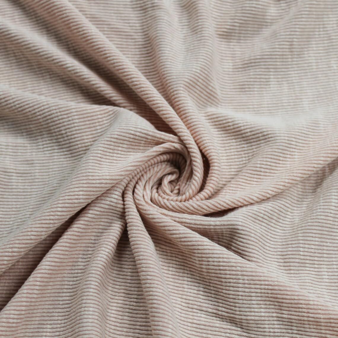 A Solid Color 2x1 Rib Sand Wash Knit Fabric. This fabric has a 4-Way stretch, 53/54", heavy-weight with a 190 GSM. This fabric comes with solid colors and thick fabric, it contains 55% Polyester, 42% Cotton, and 3% Spandex. Rib Sandwash Knit Fabric is perfect and can be used for tops, dresses, skirts, DIY Fabric, and MORE!