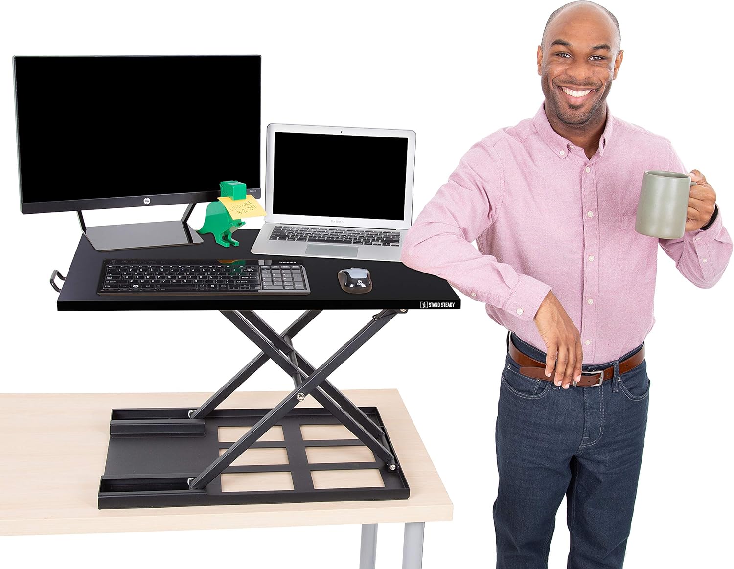 Stand Steady X-Elite Pro, Ergonomic Adjustable Height Standing Desk Converter for Home or Office, Easy Lift Sit to Stand Laptop Desk Riser for Laptop and Computer Monitor (Black, 28in x 20in)