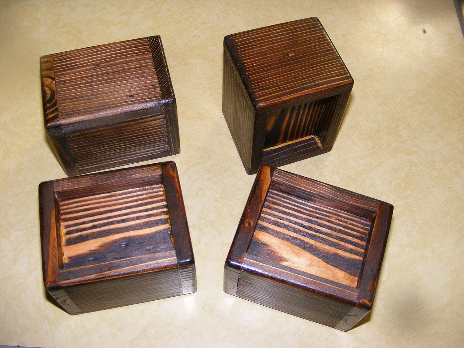Desk Lifters / Bed Lifters / Bed Risers with protective Felt Bottom for use on carpet, hardwood flooring, or laminate flooring. Fits up to 2-inch Furniture Legs. Material is Cedar outside and Douglas fir solid core. Recessed area is 2 1/4 inches x 1/2-inch depth. LIFT HEIGHT size option, 1-inch, 1 1/2-inch. 2-inch, or 3-inch. Please allow two or three days to manufacture. Made in USA by Steve's Gift Shoppe in our Oregon workshop. Bottom outer edges are rounded. Finish: Shellac, two coats. CAUTION NOTES: This product should be used with furniture legs that will fit within the recessed area and not create a ''tight'' fit. Caution: Use only in the upright position and do not use outside edges of this product for lifting purposes. Upright position is defined as recessed area is up, and flat surface of opposite side is to the floor. FELT-LINED BOTTOM.offers protection for using this product on a hardwood floor or laminate flooring. AVAILABLE IN DARK WOOD STAIN UPON REQUEST (no additional charge on a ''personalization'' request.).