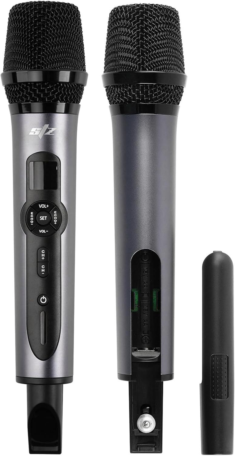 | BuiltIn Media | 1 x channel wireless metal receiver for long operation, 2 x UHF wireless handheld mic,1 x 1/4’’ audio cable, 1 x power adapter, 1 x user manual |
