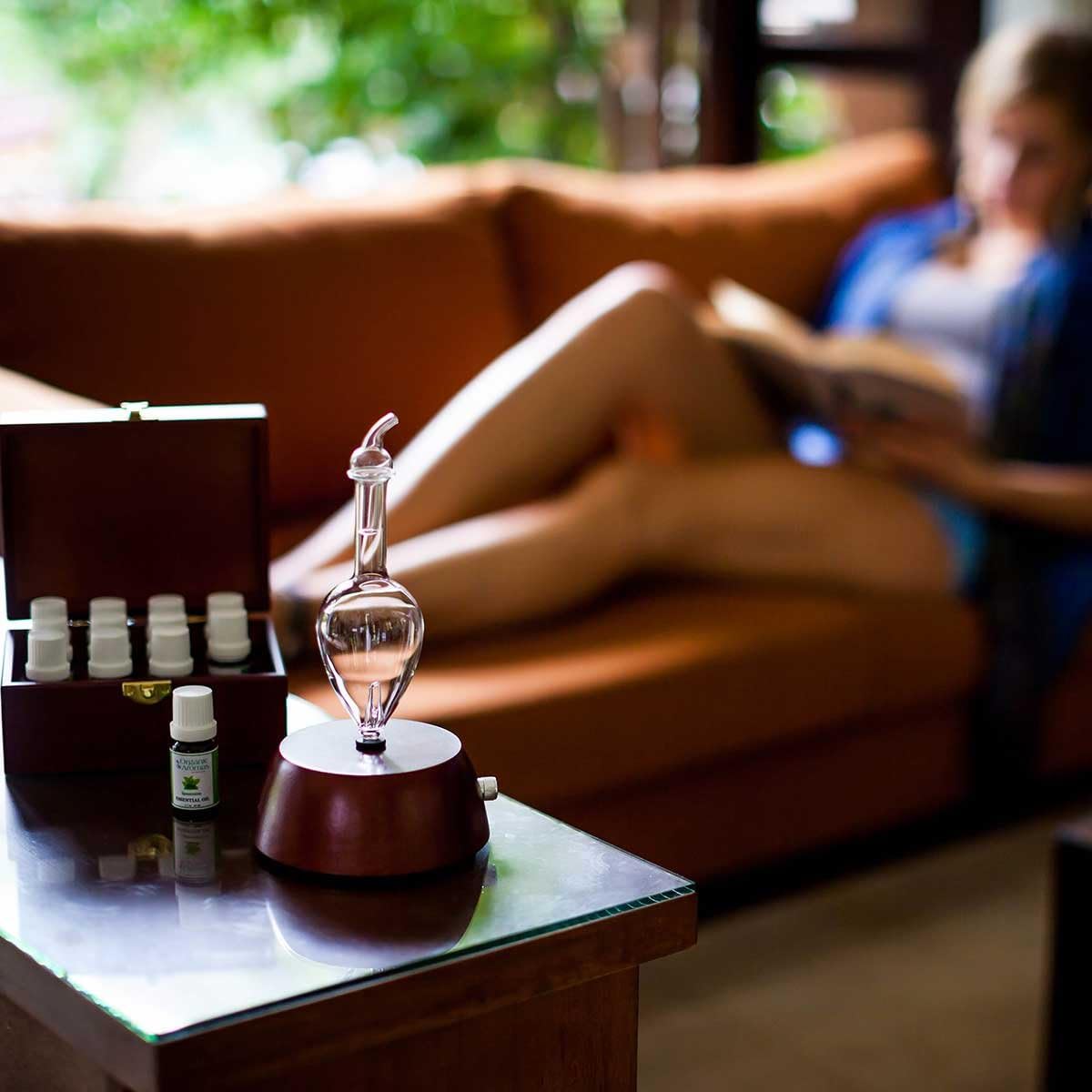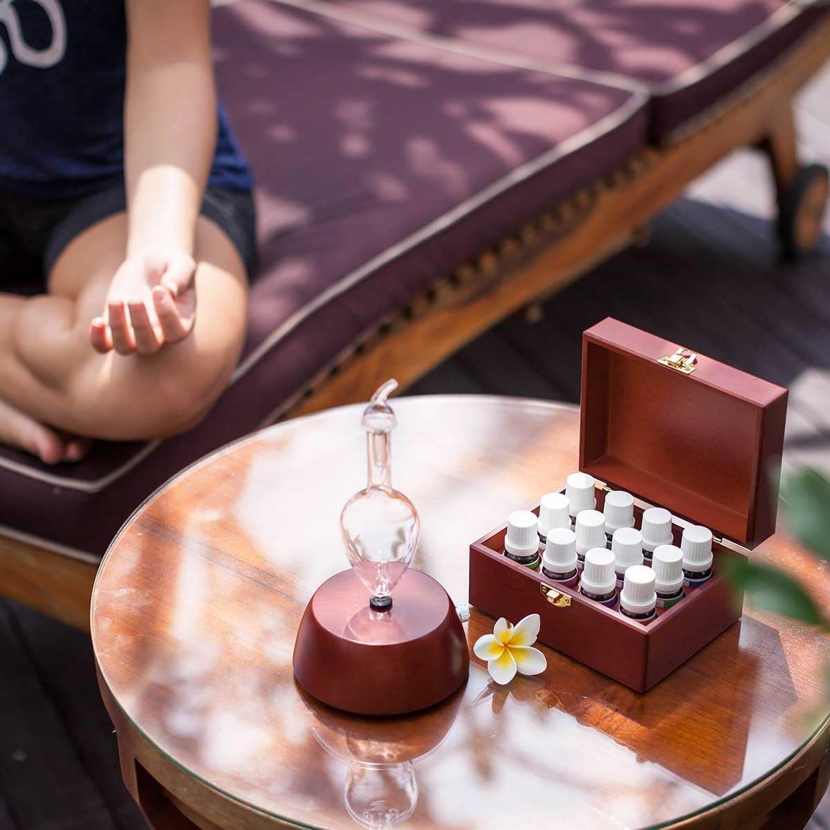 Serious About Aromatherapy? An Organic Aromas Nebulizing Diffuser is the #1 ChoiceNot just the most beautiful diffuser on the market, you simply cannot get a more powerful aromatherapy diffuser anywhere else (in ideal conditions can “cover” up to 800 sq ft/ 70+ sqm)Professional Use The only oil diffuser used by health professionals, counselors, therapists, aestheticians and kinesiologists.Change Your Environment and Improve Your LifePure essential oil is valued for the ability to calm, and stimulate. Use this Nebulizing Diffuser for multiple applications, including; to indulge, entertain, meditate and refresh.Cleaning and Care InstructionsYou only need to give your glass diffuser reservoir a quick rinse with isopropyl alcohol once a week to keep the unit in top shape.Uses Any Pure Essential Oil OnlyDo not use thick essential oils, like those extracted from tree resin, or carrier oils, like jojoba, grape seed and coconut oil, etc. Also, do not use synthetic fragrance oils.Nothing Else ComparesNo candle, no reeds, no ultrasonic diffuser and no heater device can come close. If you want the highest quality aromatherapy instrument on the market backed by rock-solid after-sale customer support then look no further than the Organic Aromas Nebulizing Diffuser.Guarantee and WarrantyOrganic Aromas backs its Nebulizing Diffusers with a ONE YEAR FREE warranty on parts and labor. If you ever have any problem or question, please let us know. We will take care of it! The dimensions of the wooden box are: 6.25 inches long (16 cm), 4.75 inches wide (12 cm), 3.25 inches high (8.25 cm)The diameter of the holes: 1 1/8th inch (2.75 cm)