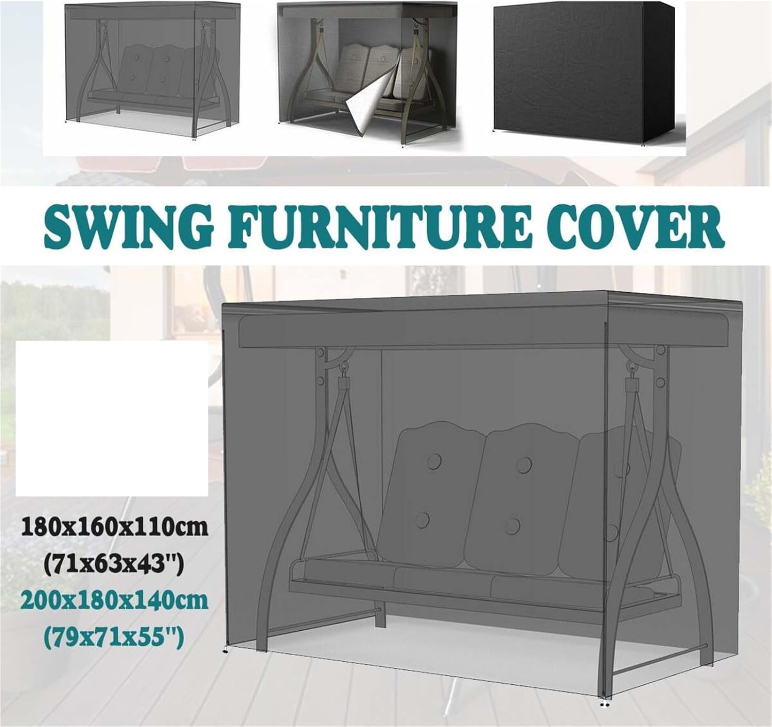 Specifications:Color:Black To Cover:3 Seater Swing Seat, Hammock, Swing SeatQuantity:1pcNote:1.Please allow 1-2cm errors due to manual measurement, note that you do not mind before order.2.Due to the differences between different monitors, the picture may not reflect the actual color.