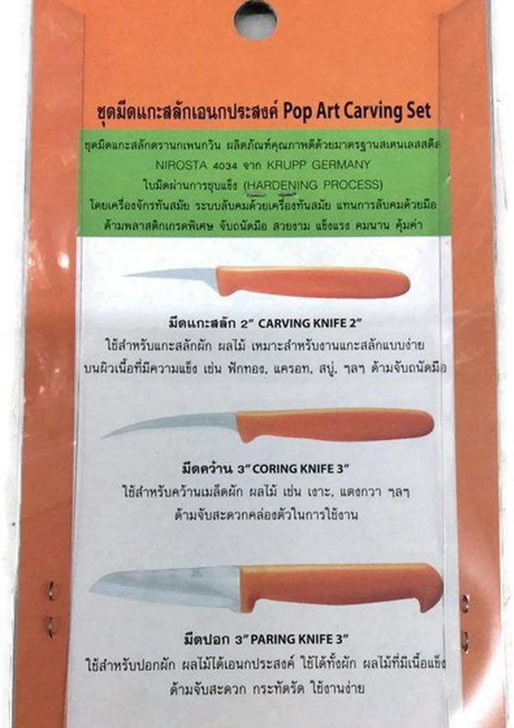 Thai Fruit and Vegetable Carving Knives, Pop Art Carve Knife. Set of 3