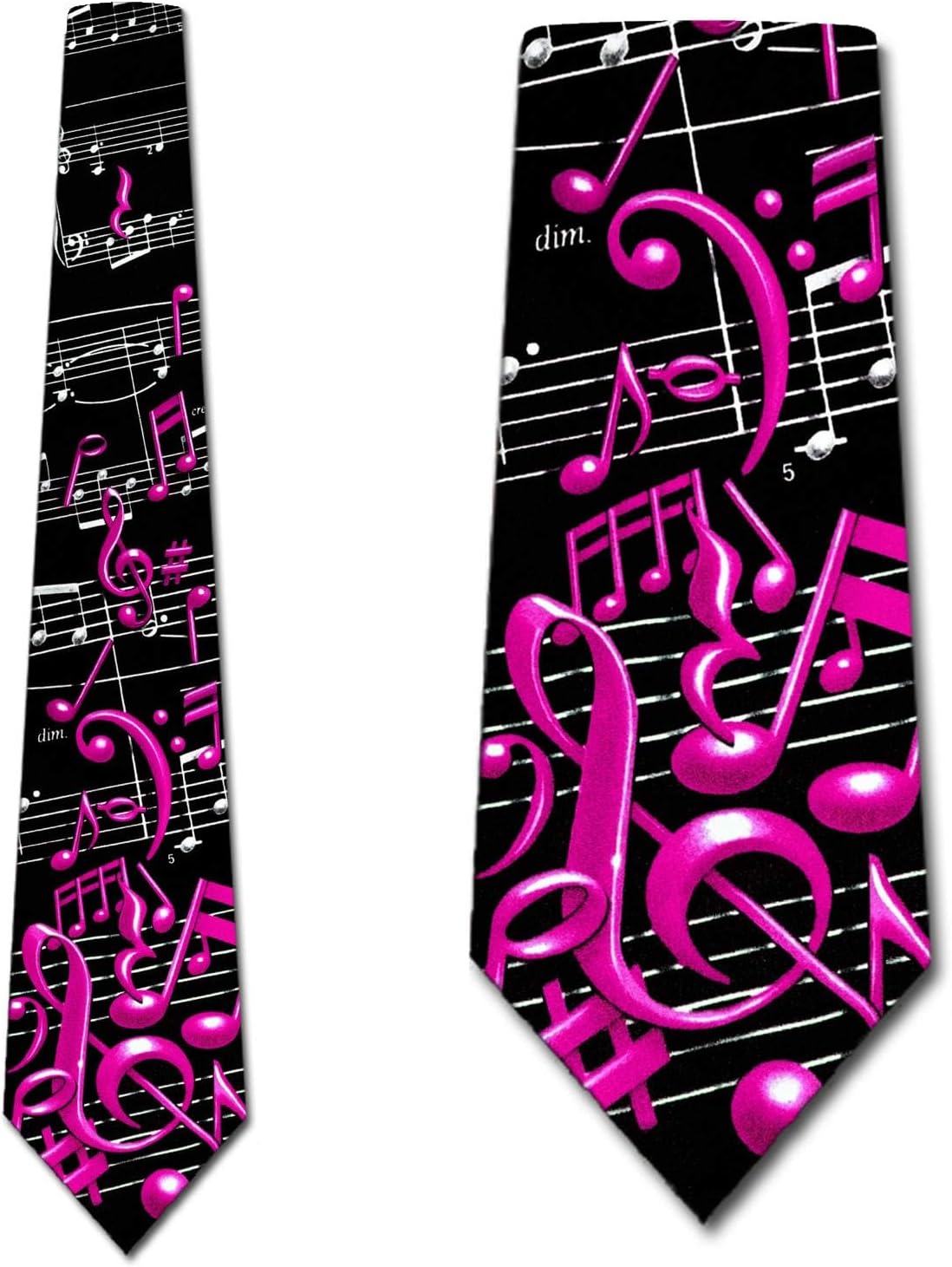 Bring the music with you, everywhere you go! This colorful and simple music themed necktie features a design with pink music notes, a white staff and a black background. This is the perfect new addition to your necktie collection! Perfect as a gift for any and all music lovers.This original tie design is produced by Three Rooker - the original creator of the novelty tie and is crafted in 100% microfiber to provide years of quality service.