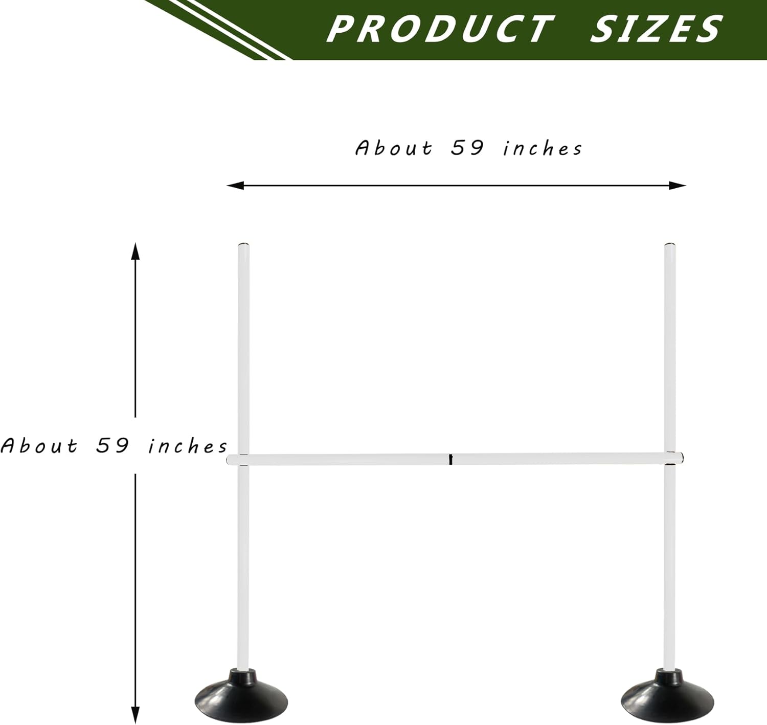 Product DescriptionSpecification:Product Name: Agility Poles Adjustable HurdlesMaterial: PVC and rubberSize: Approximately 3.3 FT Height, Approximately 4.9 FT HeightColour: WhitePackages: 3 sets, 6 setsFeatures:1. Bright colors and high visibility2. Good flexibility and durability3. It has strong stability, is not afraid of wind and is not easy to tip over.3 sets includes:18×poles9×connecting pipes6×rotating clamps6×rubber bases6 sets includes:36×poles18×connecting pipes12×rotating clamps12×rubber basesDue to lighting conditions and display Settings, the actual product color may slightly differ from the image. Please refer to the physical item you received