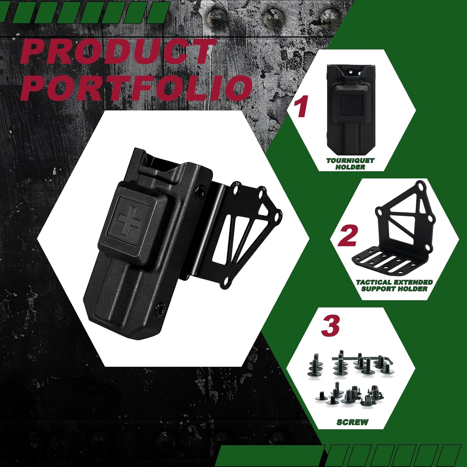 MOUNTING HARDWARE INCLUDED: Tourniquet Holder, Tourniquet Mount Adapter*1, phillips head screws*2, Long screw *6, Medium screw*6, Short screw *3,buckle*5, Spanners*1.【With different sizes of screws, various mounting gun holsters options】