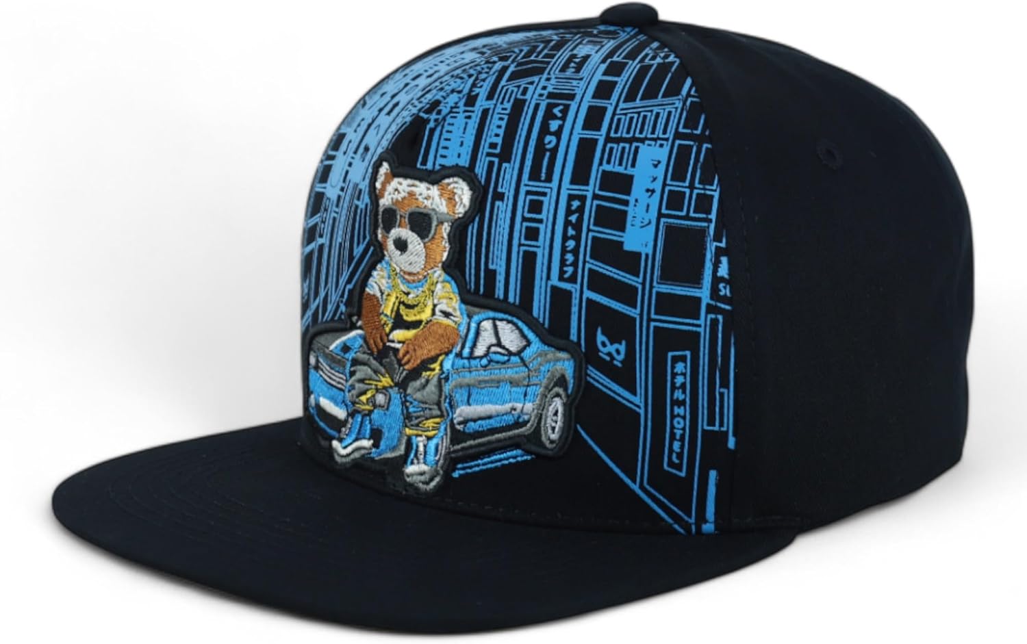 The Trendy Apparel Shop Bear Embroidered Flat Bill Snapback Cap is designed for style, durability, and all-day comfort. Made from high-quality fabric and materials, this cap features a high-profile structured crown with sewn eyelets for added breathability. The bold bear embroidery on both the front and back adds a unique and eye-catching touch. Its stiff, flat bill delivers a modern, sharp look while providing sun protection. With an adjustable snap closure, this cap offers a customizable fit, making it a great choice for most head sizes. Elevate your hat collection with this standout embroidered snapback!