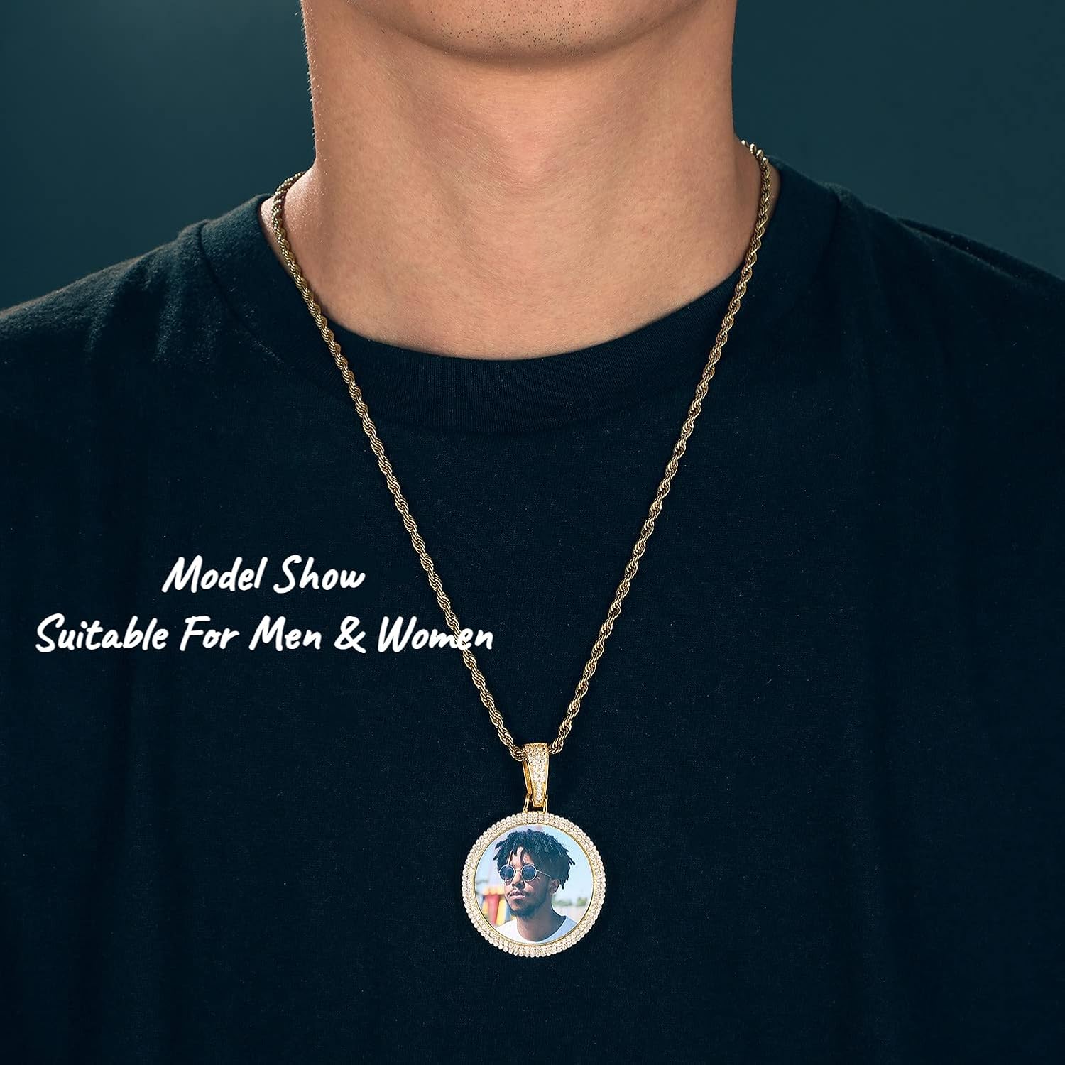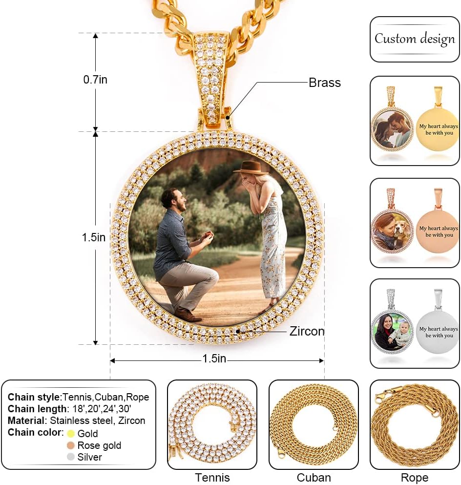 | Color | 0376 Round Gold Photo & Text Rope Necklace |