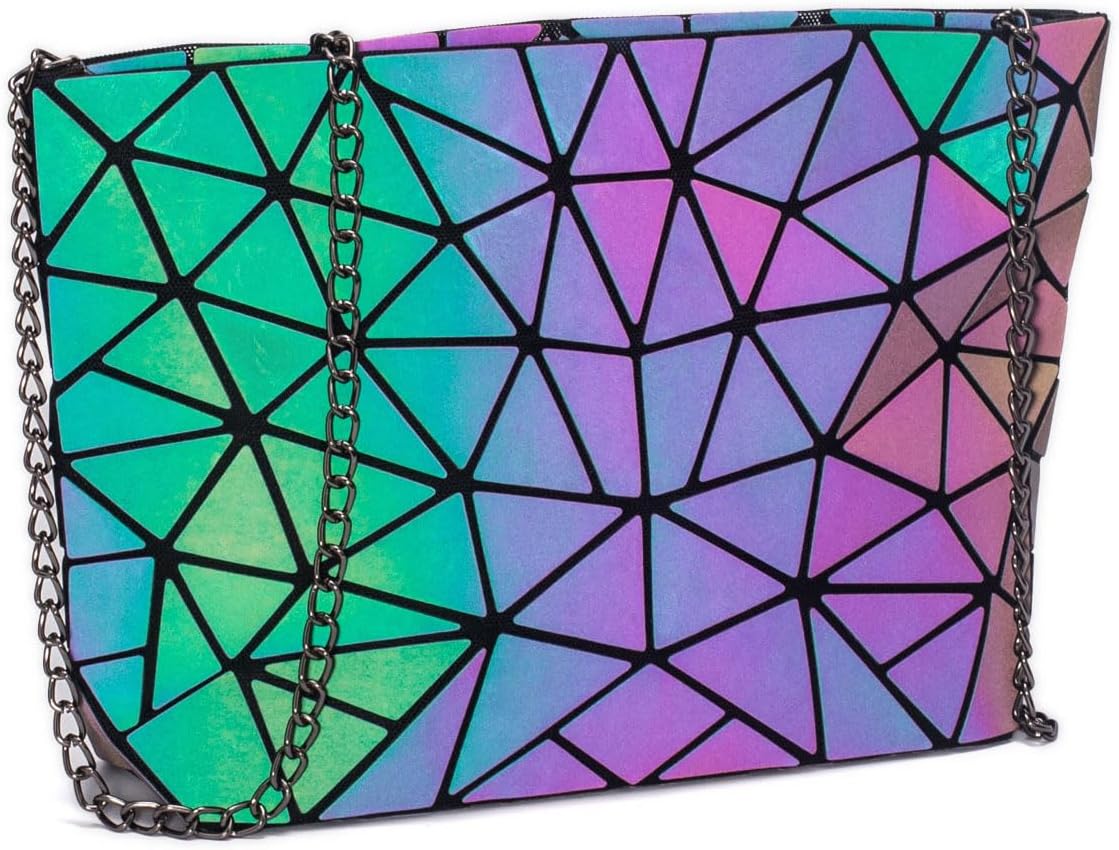 Product description: Noctilucent Geometric Irregular Shoulder Bag High quality material does not deform, lightweight, portable and comfortable to touch. Waterproof and durable fabric. Easy to clean, just wipe it with a damp cloth. Casual style and easy to wear for: going to school and college, hiking, going out, shopping, etc.