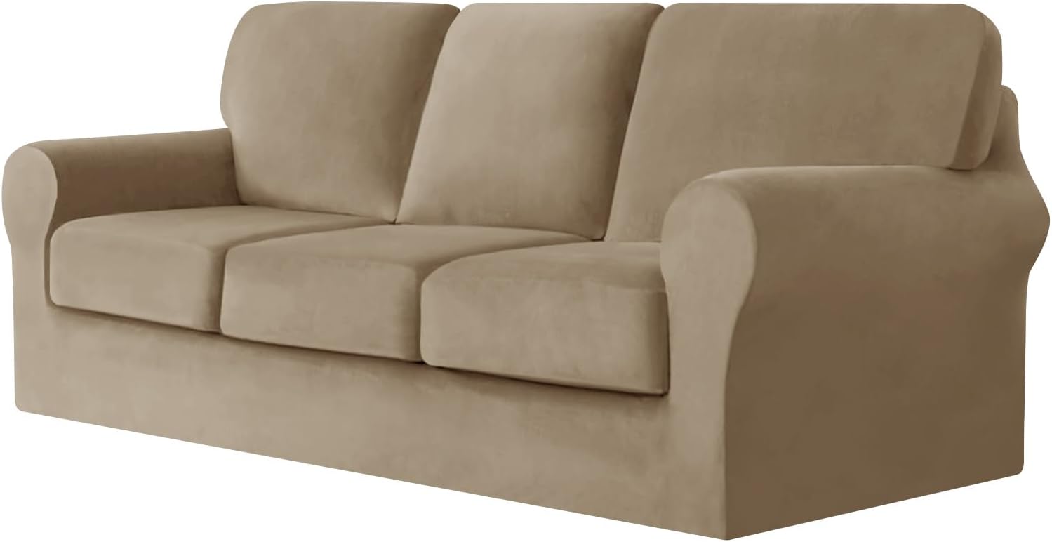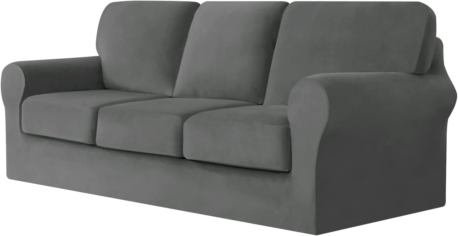 If you are looking for an EFFORTLESS & AFFORDABLE way to update your living room, you've come to the right place! Easily upgrade your furniture in minutes with our premium Couch Covers. Stretch velvet sofa slipcover with separate backrest covers and seat cushion covers. A must-have for homes with children and pets! PACKAGE INCLUDES 7 PCS: 1pc Large Main Sofa Cover 3pcs Rectangle Backrest Covers 3pcs Square Seat Cushion Covers MEASUREMENG TIPS: To ensure a better fit, please measure before buying. The first thing we recommend you do is measure the "length of the sofa". Once you know it, you can start choosing the right specifications and size from our covers for your sofa. CARE INSTRUCYION: Machine washable, wash at temperature below 30 ° C (86 ° F). Gentle cycle, do not use bleach, low tumble dry, no need ironing. NOTE: Due to different monitor, colors may showcase a slightly different. But we have done our best to minimise colour differences Due to measure by hand, there may be a deviation of about 2-3 cm. It is recommended that the cover is slightly a little larger than sofa. Our fabrics are stretchy, so the sizes we offer are a range rather than a numerical value. As long as the size is within the range it can be used. If your seat cushion cover and backrest cover are other sizes, please contact our customer service staff for a replacement after purchase and we will send out the right cover for your furniture size.