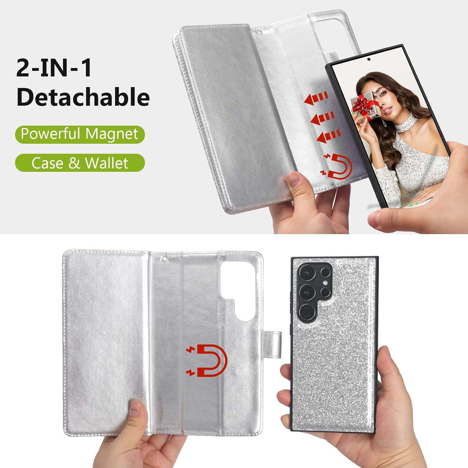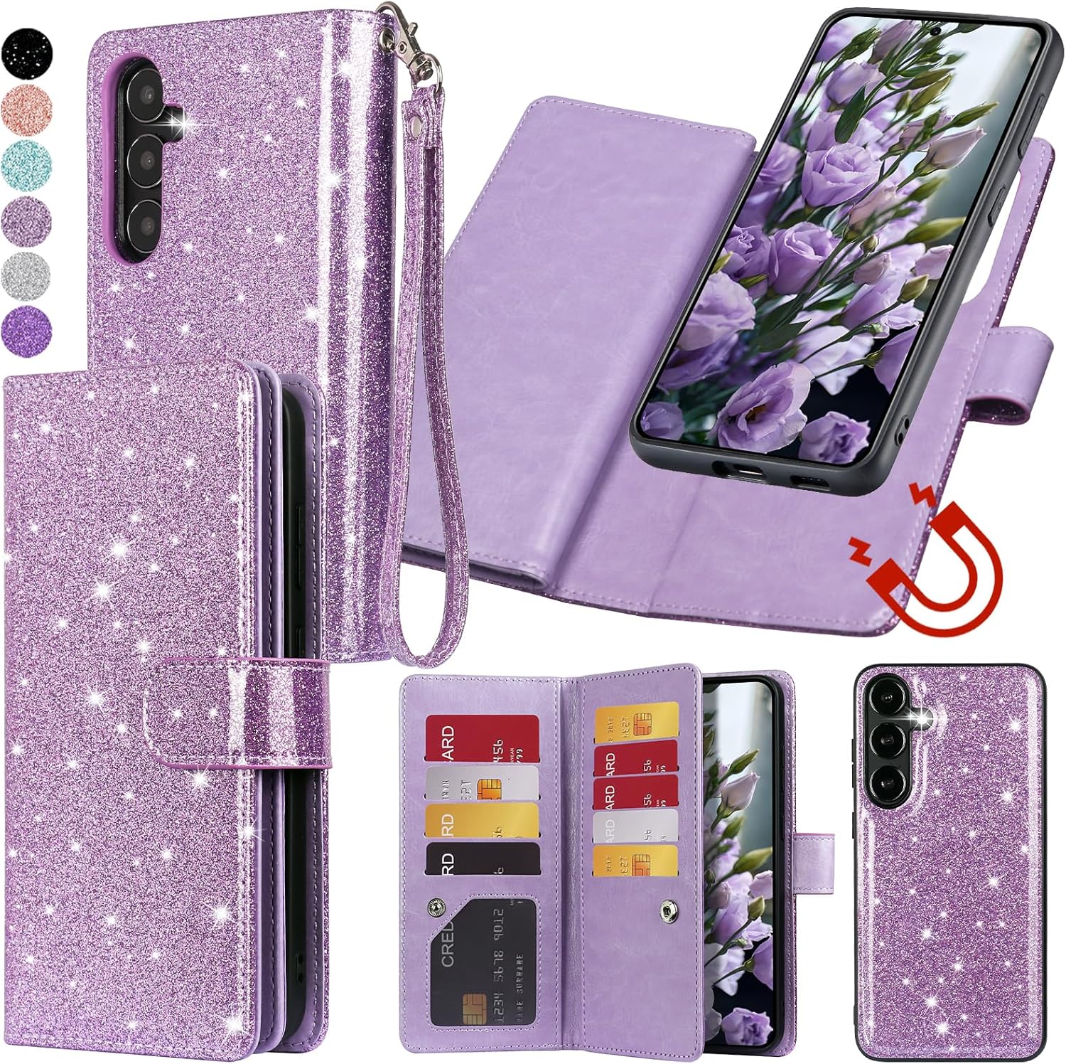 | Additional Features | 2-in-1 Wallet Phone Case, Card Slot, Detachable Magnetic Phone Cover, Premium Fashion Glitter for Women, With Removable Wristlet Strap |