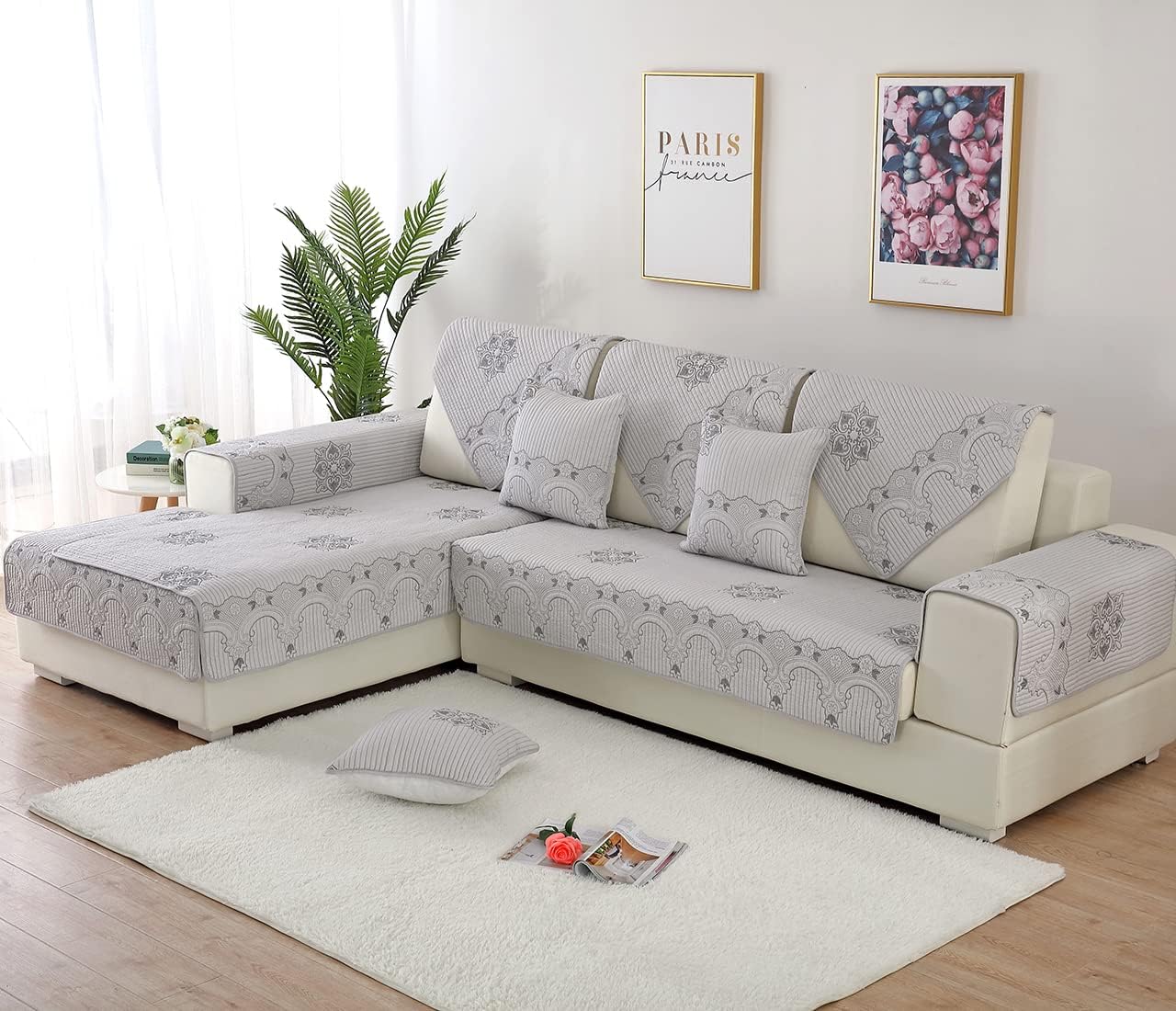 WHAT SIZE SHOULD I ORDER?Please MEASURE your furniture prior to purchasing. Each piece of furniture is unique and we want you to be thrilled with the fit. You can find a detailed size guide below:Sofa, Loveseat & Chair Size:1. 28" Width Series fits for sofa width equal or less than 24". Refer to length, please add extra 4" - 8" longer than actual sofa length.2. 36" Width Series fits for sofa width between 24" to 32". Refer to length, please add extra 4" - 8" longer than actual sofa length.3. 43" Width Series fits for sofa width above 32". Refer to length, please add extra 4" - 8" longer than actual sofa length.Armrest Size Reference:Two sizes for choice: 28" x 28", 36" x 36", please measure and choose suitable size to match.Backrest Size Reference:Backrest width below 32", recommend folding the 28" x 28" rectangular cover to trianglular shape shown in the picture.Backrest width below 32", recommend folding the 36" x 36" rectangular cover to trianglular shape shown in the picture.CAN I USE THIS ON LEATHER FURNITURE?Our slip-resistant protector works great on both fabric and leather furniture. However, because leather furniture does have a smoother surface, you may find that additional adjustments may be necessary.