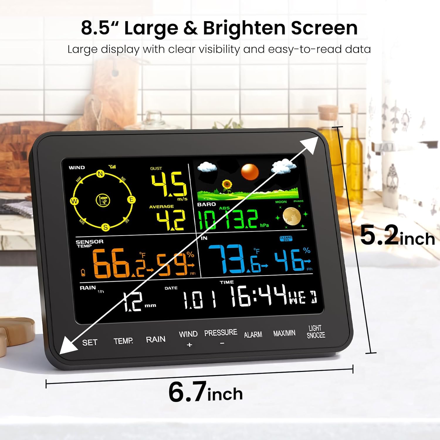 Weather Stations Wireless Indoor Outdoor, Home Weather Station with Rain Gauge Outdoor for Temperature, Humidity, Forecast, Pressure, Moon Phase and Alarm Clock for Patio, Bedroom(No WiFi)