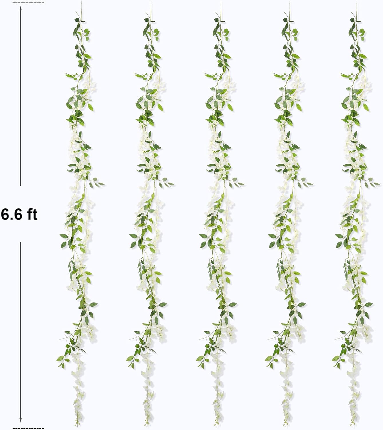 Introduce a touch of natural beauty into your indoor or outdoor space with these stunning wisteria hanging flowers. With lifelike petals and leaves, these flowers offer a realistic appearance that is sure to impress. Being light and moldable allows for easy installation on any suitable support, whether it's a garden trellis, porch railing, or indoor fixture. These wisteria flowers are made with high-quality materials that are designed to last, even when exposed to the elements. Plus, they require minimal maintenance, making them a great option for busy individuals who still want to enjoy the beauty of nature.In addition to their aesthetic appeal, these wisteria hanging flowers offer great value for their price. With a set of flowers, you can achieve a stunning visual impact that will last for years to come. Whether you're looking to add some color to your home, garden, or patio, these wisteria hanging flowers are a versatile and beautiful option that won't disappoint. Product information: 1. One order includes 5 wisterias 2. One wisteria is 6.6ft/2m long, 5 flower stems, flower stem approx 1.9ft/58cm long 3. Weight: One wisteria weighs 2.3oz/65g, total package weighs 13.1oz/370g 4. Product photos are taken using one package (one order), no deceiving product photos!Material: 1. Stem is made of odor-free plastic and flowers are made of silk 2. Note: might have slight odor when opening Note: 1. If for some reason the flower stem or leave stem comes off, it is easy to plug it back in 2. For a more thicker wisteria decoration, as for example for wedding arch, it is recommended to buy more than one package, as these wisterias are endlessly stackable, and more flowers will look even more beautiful! For more information about our brand and contacting, please visit: www.homestarr.net