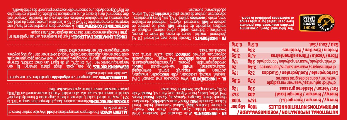 Weâre a bit nuts about our White Chocolate Salted Peanut protein bar! This triple-layered high protein treat is loaded with delicious salted peanuts, soft nougat and smooth caramel, all wrapped in a white chocolate coating. Packed with 20g protein and only 2g sugar, White Chocolate Salted Peanut is a must-have addition to your snacking stockpile! Â One box contains 12 x White Chocolate Salted Peanut Protein Bars