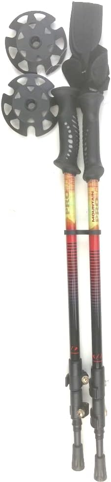 The Mountain Pro telescopic all season poles are 3 piece telescopic 4 Season poles. Made of 6061 aluminum it is a telescopic poles with carbon steel point that extends from 115cm to 140cm and includes a snow basket and rubber walking tip. Two “Fast Locks” make length adjustment easy, fast and secure. There are also tightening screws to secure the fast locks for extra secure fit. The grip is made of dual density rubber and the adjustable strap from neoprene and nylon, provide ergonomic comfort. A great choice for short or long journeys whether you’re on skis, XC skis, snowshoes or hiking. At 28″ when fully collapsed, easily packs away for storage in backpack. Warranty: 1 year Color: multi