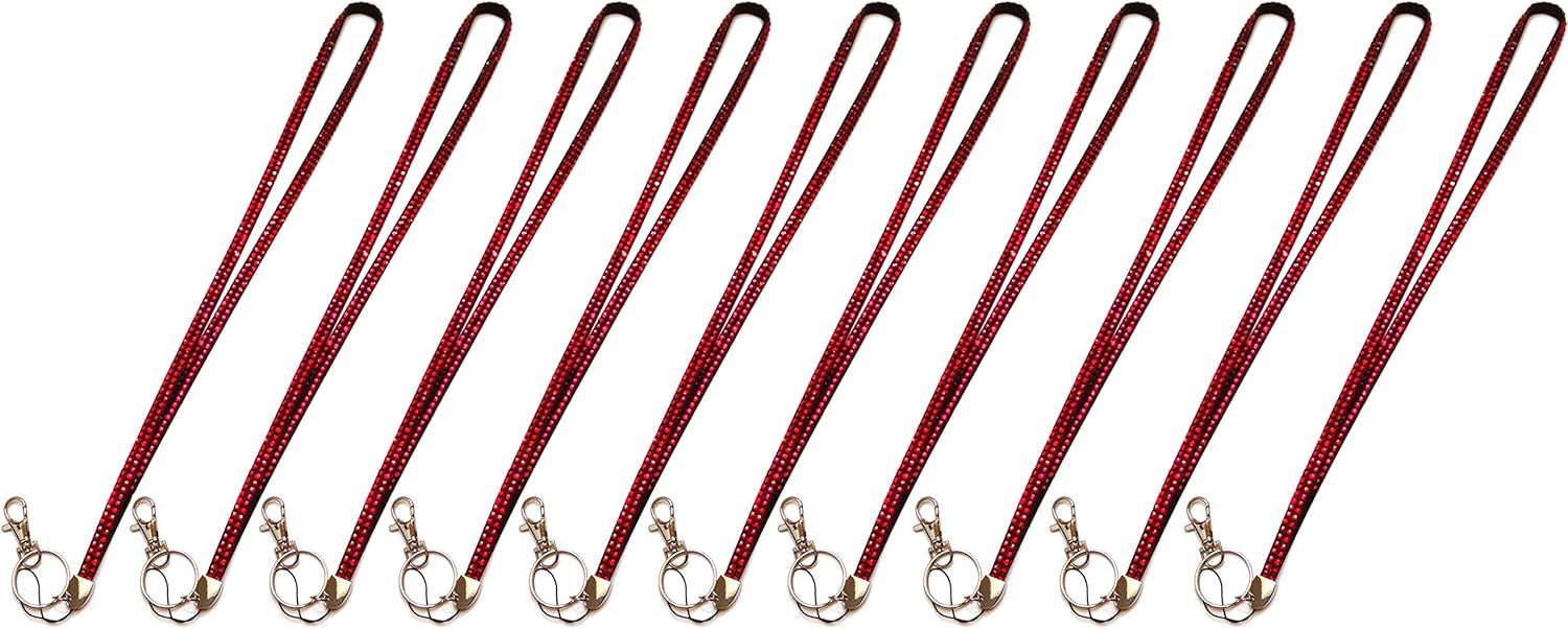 WigsPedia Rhinestone Crystal Neck Lanyard ID Badge Keychain Holder (Qty 10) pack of 10 Perfect for keys, cards, and badges Long enough to wear around the neck Measurement: 19.5" one way, 39" all around