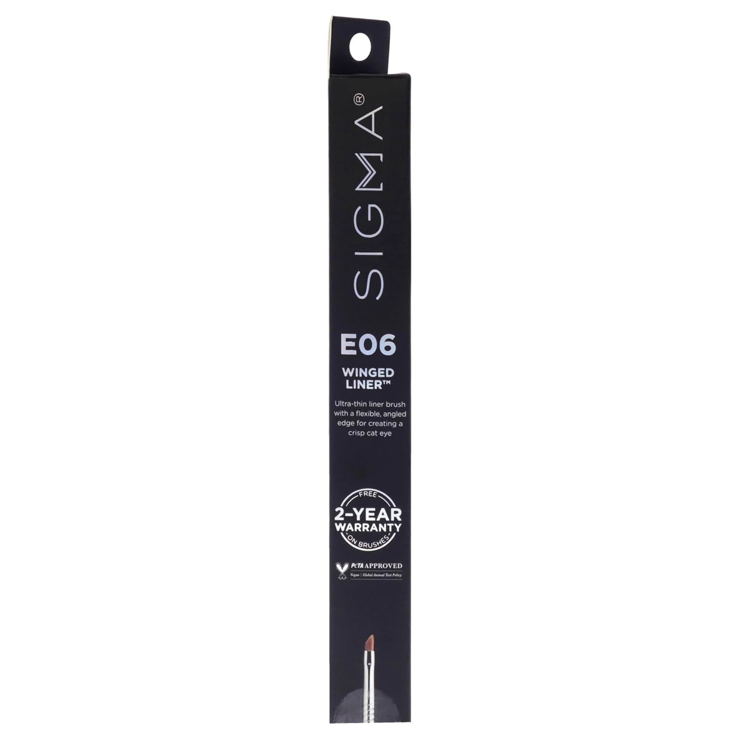 Finally get your perfect, crisp cat eye with this small, sharply angled SigmaTech fiber brush and any gel or liquid eyeliner. Achieve precise control for winged liner.