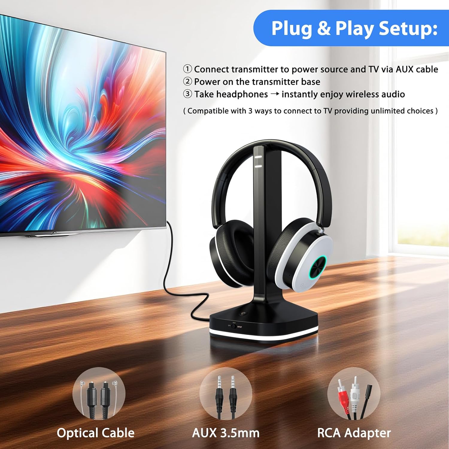 | BuiltIn Media | DC-5V power adapter, Optical cable / AUX 3.5mm cable / RCA cable, TV-Headphones *1, Transmitter - Charging Station *1, USB-A to USB-C charging cable |