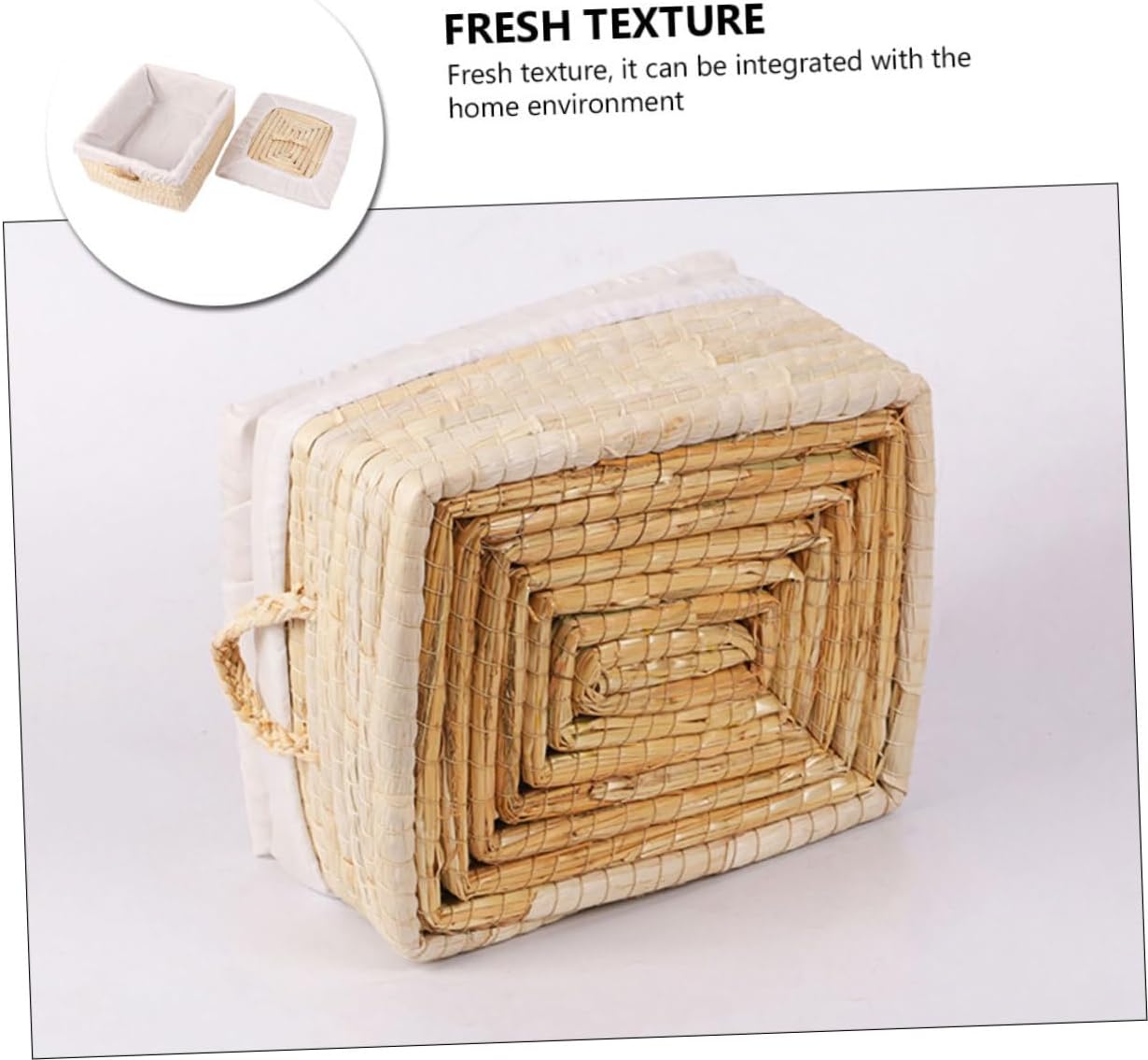 Package Include 1 x Basket Characteristics -Color: Beige. -Product Info:Baking bread basket -Material: Straw Corn Husk. -Size: About 30.00X25.00X14.00cm/ 11.79X9.82X5.50in. - Fine workmanship, not easy to deform home decor basket. - With inner and cover design, it can basket. - Can be used in the kitchen, living room, dining room bread baskets. - It can hold fruits, breads, eggs and other foods produce basket. - Made of and reliable in quality.Goods Informationbread baskets for serving Are you looking for a storage basket for your home? Do you want a creative bread container? If so, please look no further, our storage basket can meet your needs.grocery basket Made of with .bread storage basket one!