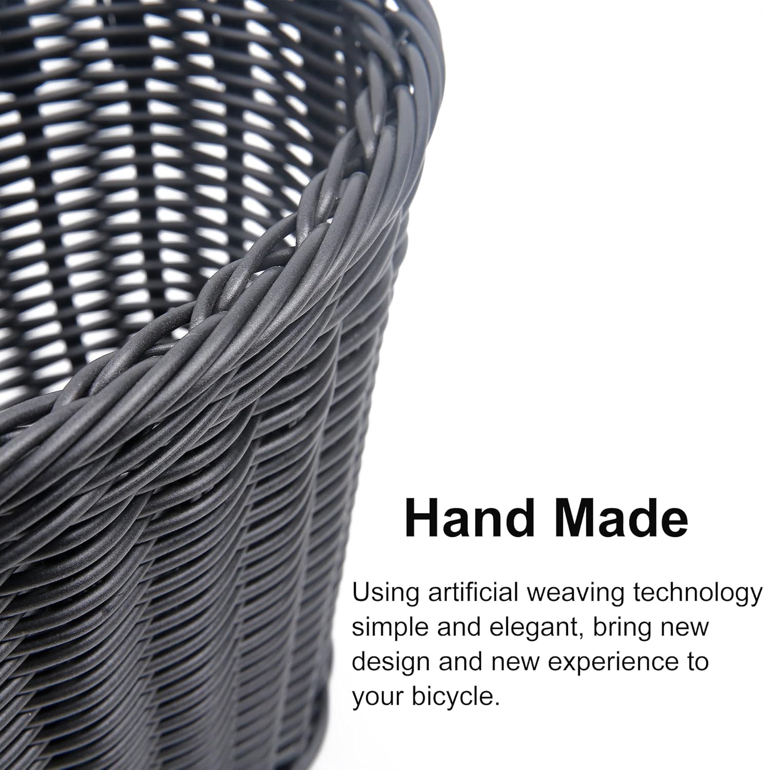 Biking just got better with Jranter's Woven Bike Basket with straps. You can mount this basket on just about any bike in order to carry your personal belongings, water bottle, snacks, or whatever you may need on your ride! This is a traditional style woven bike basket that is made from weather resistant plastic and has easy adjust nylon straps. Designed with versatility for mounting and fully adjustable straps for added convenience.Jranter Adults Woven Bike Basket with Straps, Brown: 11.4"L x 8.66" W x 8.07" H. Removable bike basket with adjustable nylon straps. Weather resistant material. Classic woven basket design. Use this basket on almost any bike and anywhere else you may need a removable basket.Jranter Kids Woven Bike Basket with Straps, Black: 11.4"L x 8.66" W x 8.07" H. Removable bike basket with adjustable nylon straps. Weather resistant material. Classic woven basket design. Use this basket on almost any bike and anywhere else you may need a removable basket.Note: There might be a slight variations in the color and size because each basket is handmade.