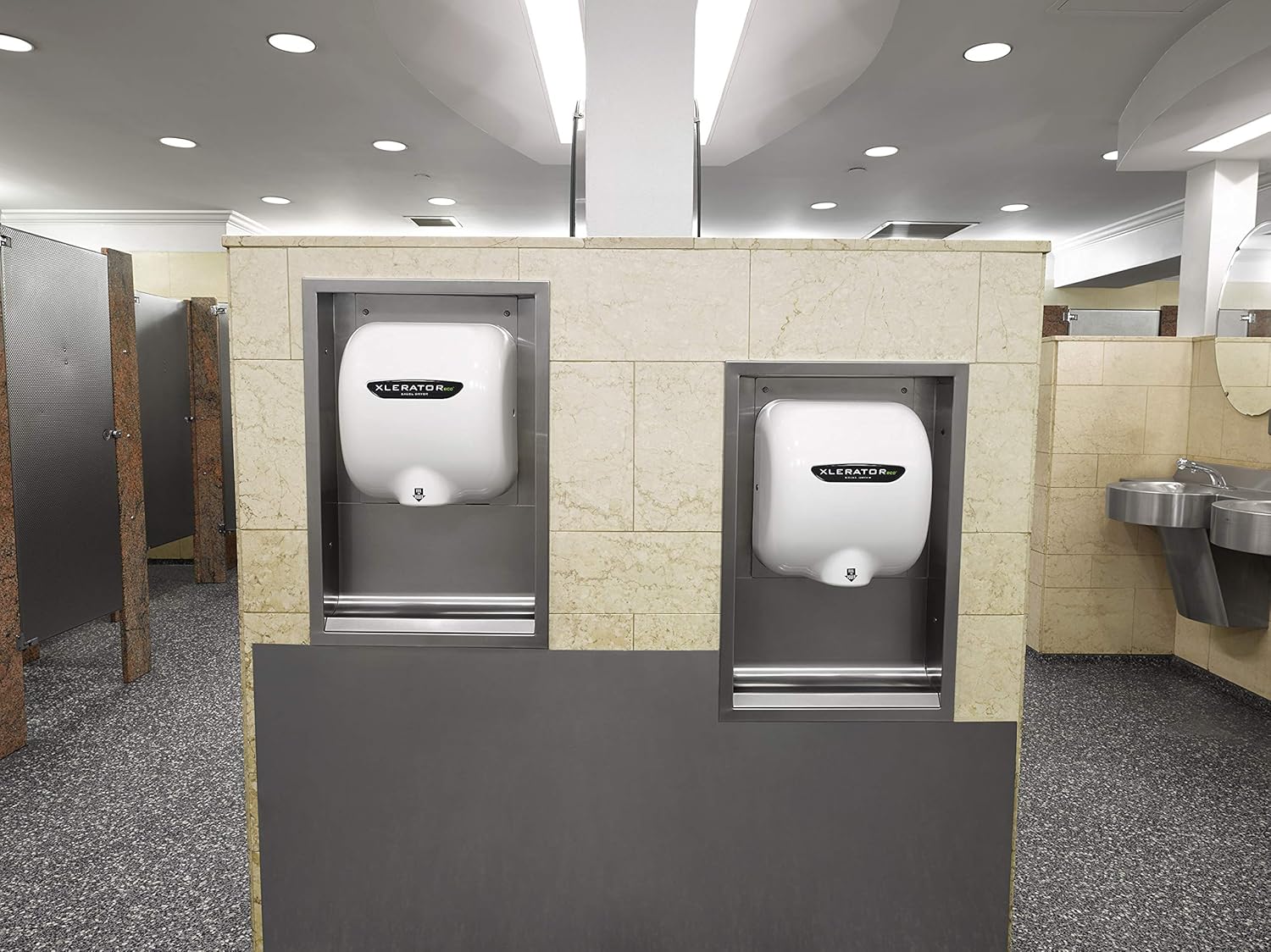 Excel Dryer’s XLERATOReco Hand Dryer is a high-speed, energy-efficient product for your restroom. It uses new ‘no heat’ technology to dry hands in 10 seconds using only 500 watts, making it the most energy-efficient and environmentally friendly hand dryer on the planet. It represents a 95 percent cost savings when compared to paper towels and eliminates their labor, maintenance, and waste, while creating a more hygienic restroom environment. Maximum draw of 4.5 amps allows for multiple units to be installed on one circuit which significantly reduces the time and cost of installation. White Thermoset (BMC) Cover. Includes hardware for surface mounting. 110 Voltage.