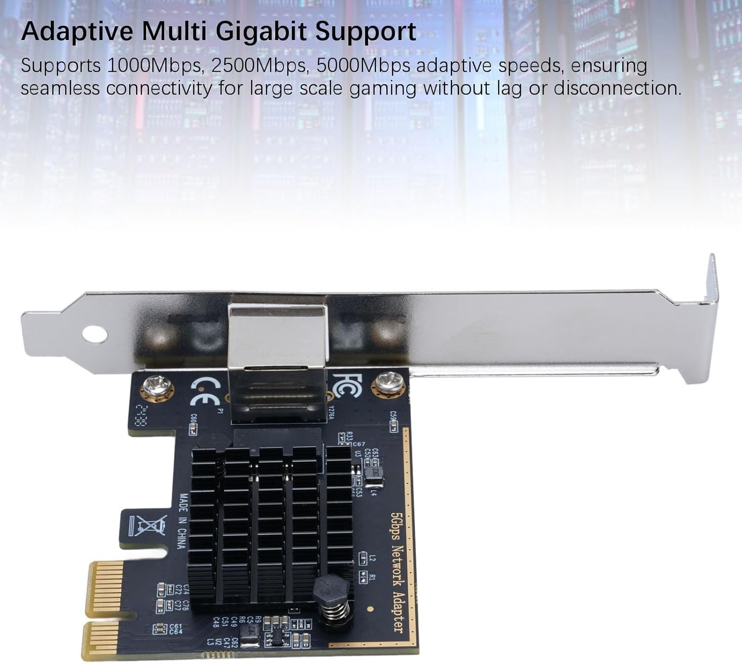 Specification: Item Type: PCIe Network Card Material: PCB Main Chip: for RTL8126 Chip Interface Type: 1 RJ45 Port Port Rate: 10M, 100M, 1000M, 2.5G, 5Gbps Bracket Height: Low Profile Application: for Desktop, Server, NAS, Router, etc. Bus Type: PCIe x1 System Support: for Wins 7, 8, 10, 11, for Linux, etc. How to Use: Plug and play PackageList: 1 x PCIe Network Card 1 x Low Profile Bracket (Structure Random)