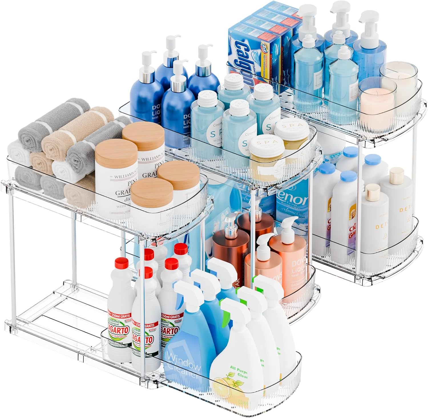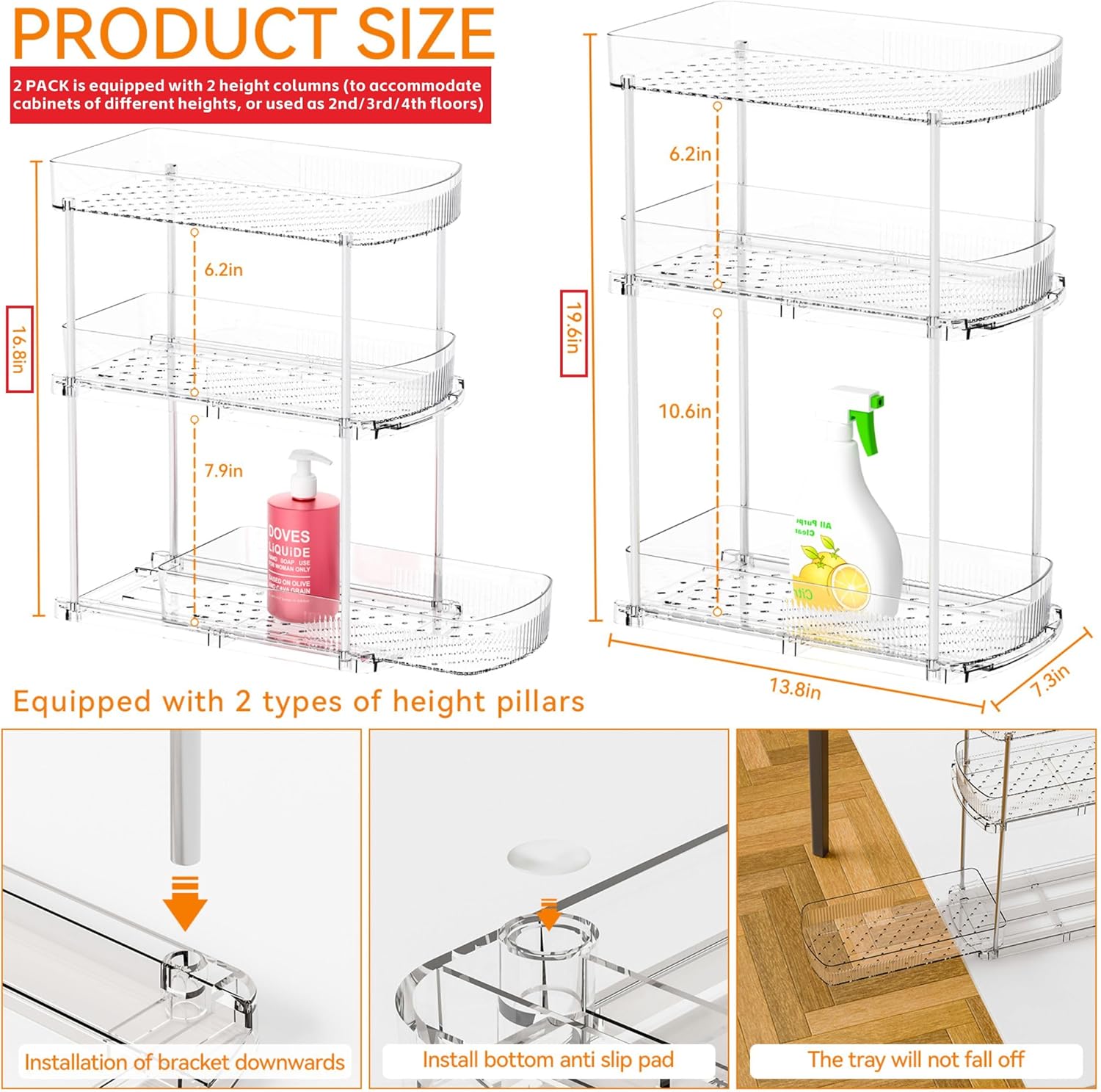 【Space Saving】our toiletries organizer Maximize the use of vertical storage space under the sink,Perfect for storing cosmetics, toiletries,makeup,Beauty products, facial products,Hair product accessories,perfumes,snacks, bottles, spice jars.Baby bottles,vitamin bottles,medicines and cleaning supplies storage