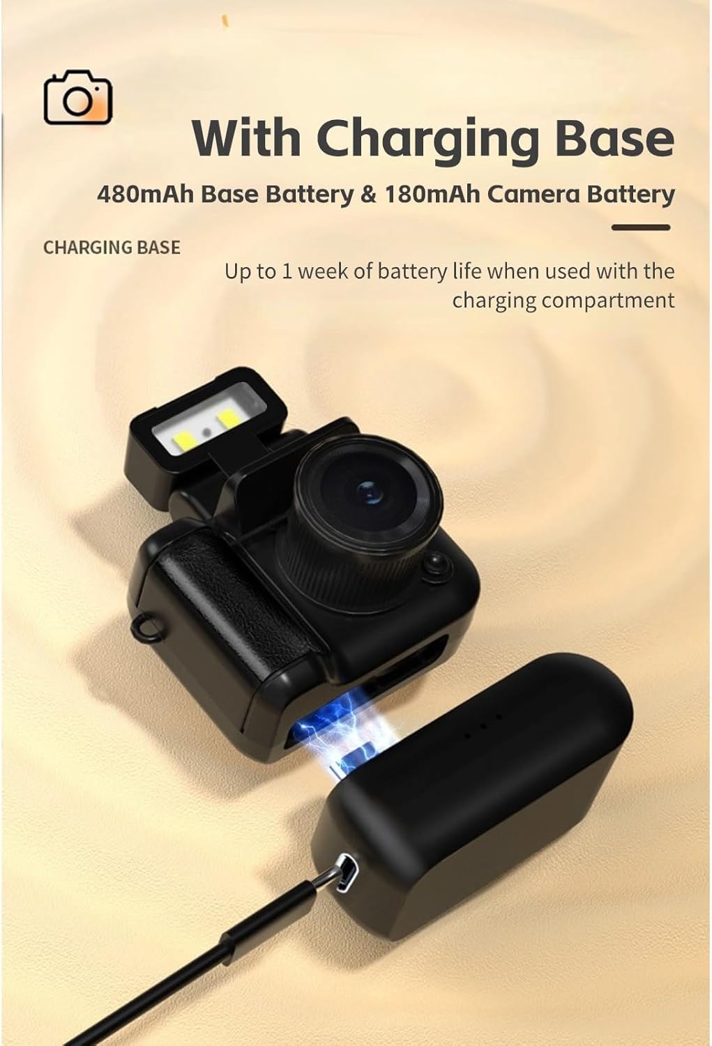 | Camera Lens | Wide-angle lens with a built-in flash for low light photography. |