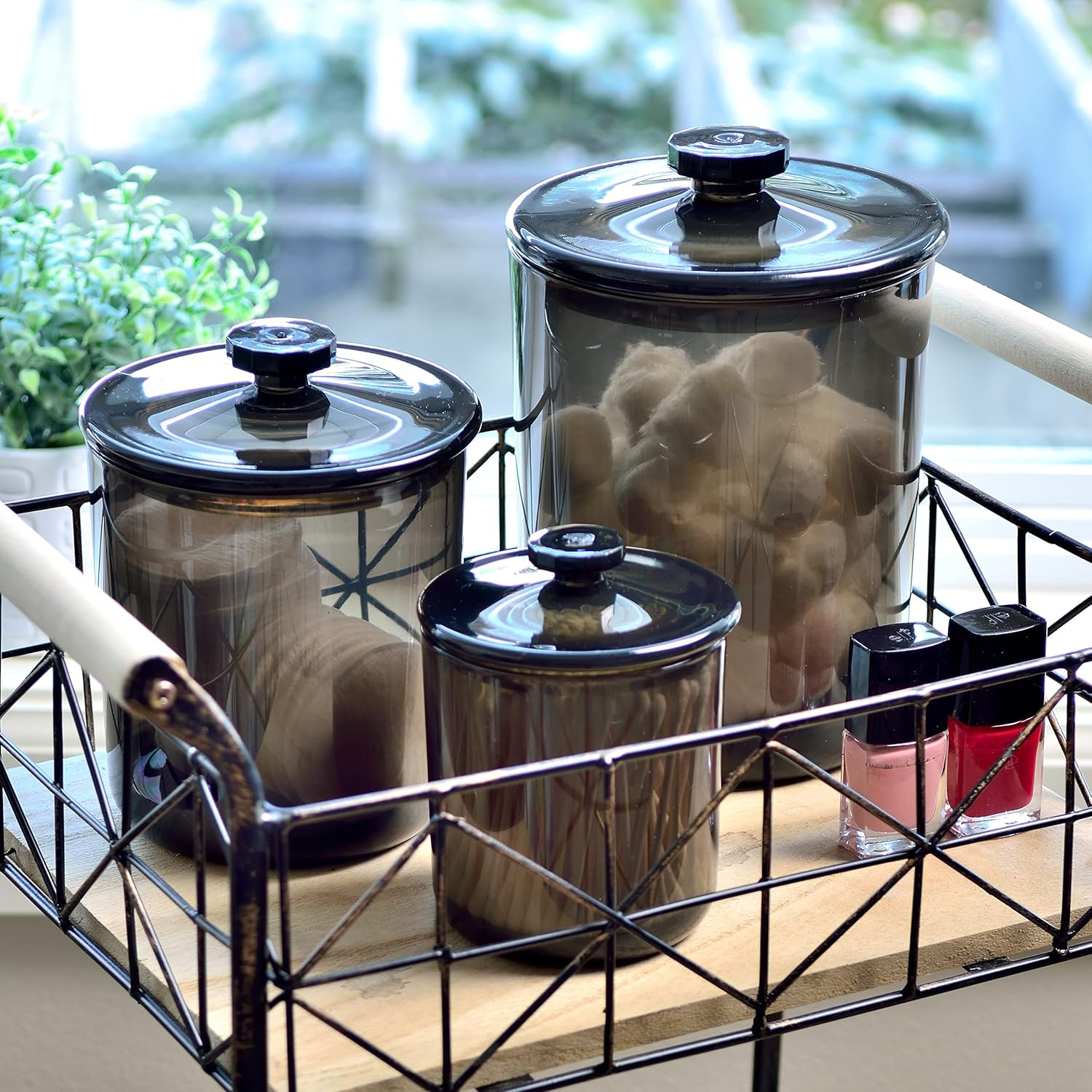 | Title | Youngever Black Plastic Apothecary Jars, Qtip Holder, Cotton Swab Holder, Bathroom Vanity Organizer for Cotton Balls, Cotton Pads, Qtips (3 Sets) |